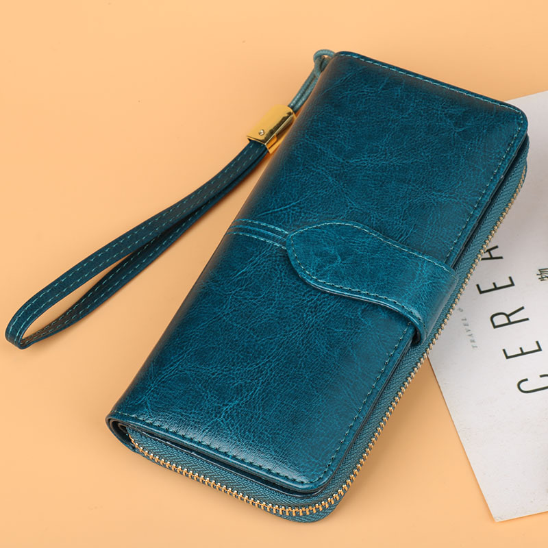 日本品质2025新款油蜡牛皮女士钱包长款多功能卡片钱夹多卡位皮夹