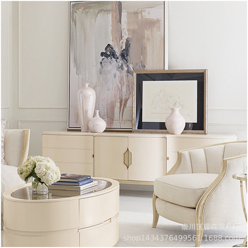 电视柜现代简约轻奢现代客厅美式视听柜小户型实木家具茶几组合
