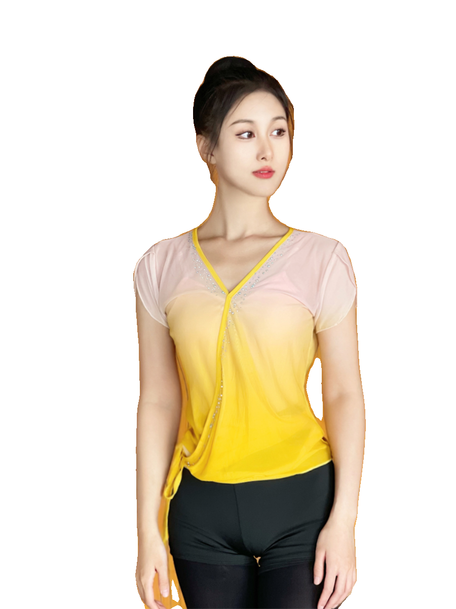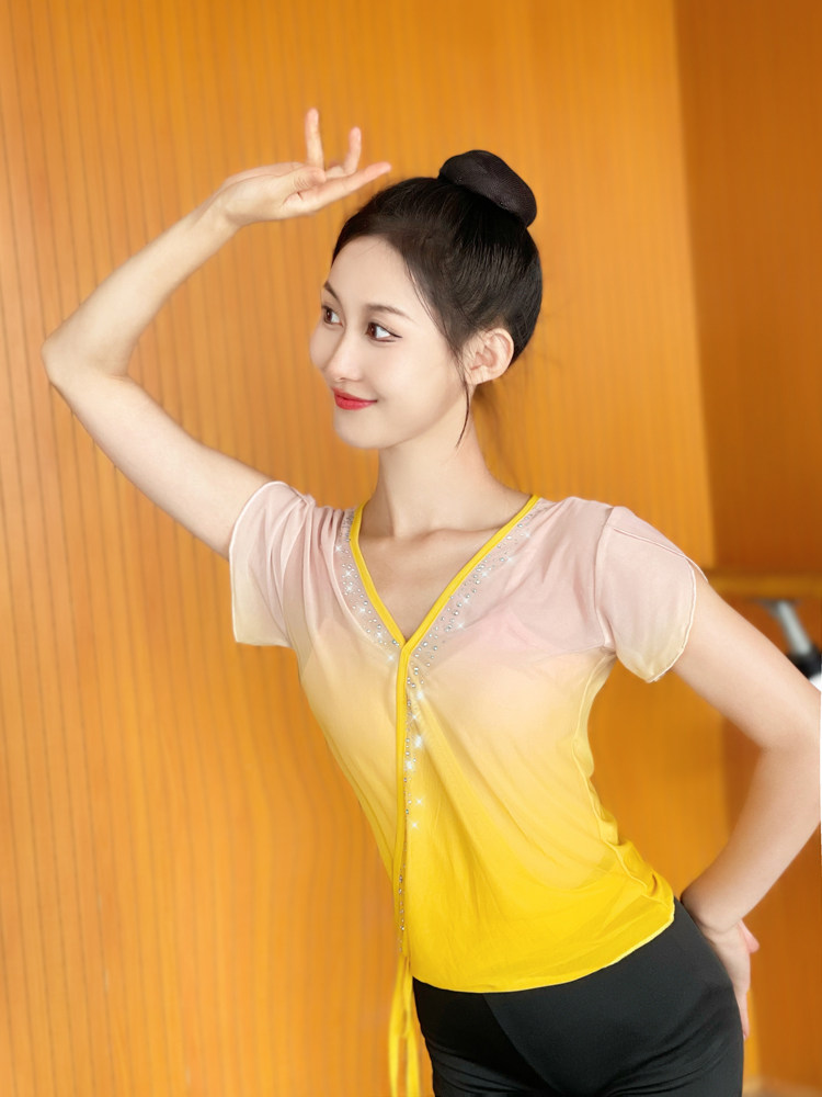 古典舞身韵纱衣基训女短袖水钻新款团服练功服上衣短款飘逸演出服