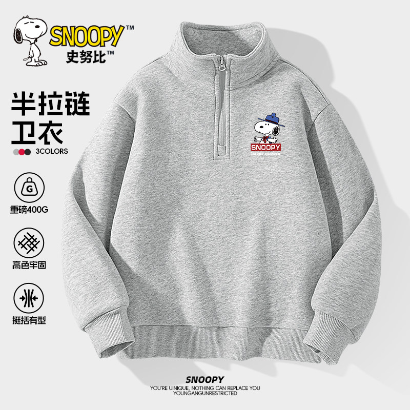 史努比男童卫衣春秋款2025新款男大童春季外套儿童半拉链立领上衣