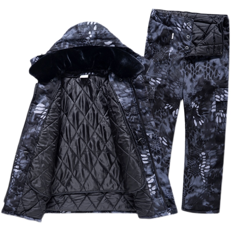 迷彩棉服男冷库防寒服套装劳保工作服棉衣棉裤冬季加厚中长款