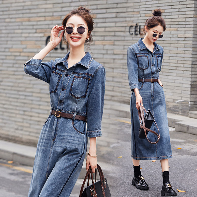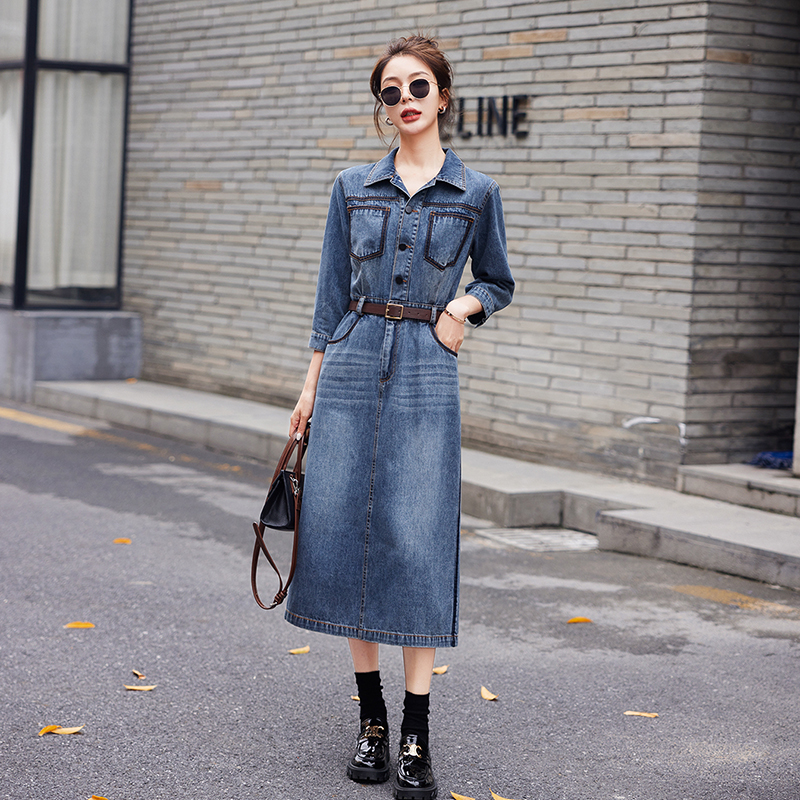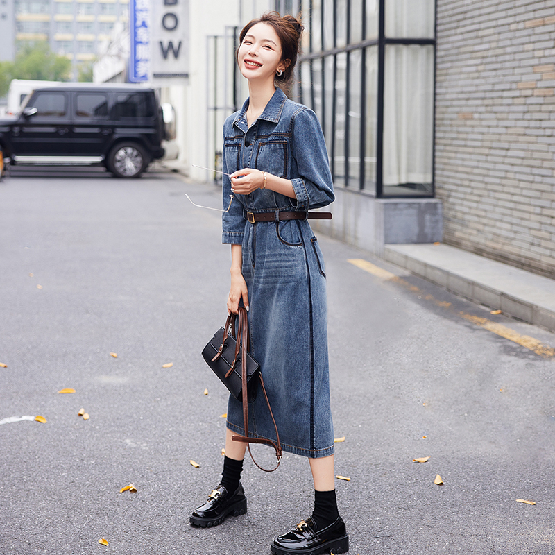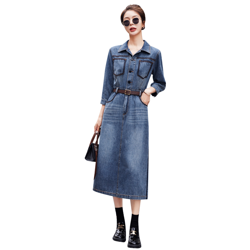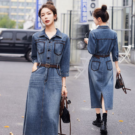 欧洲站高级修身牛仔裙连衣裙潮2025早春新款减龄七分袖显瘦长裙女