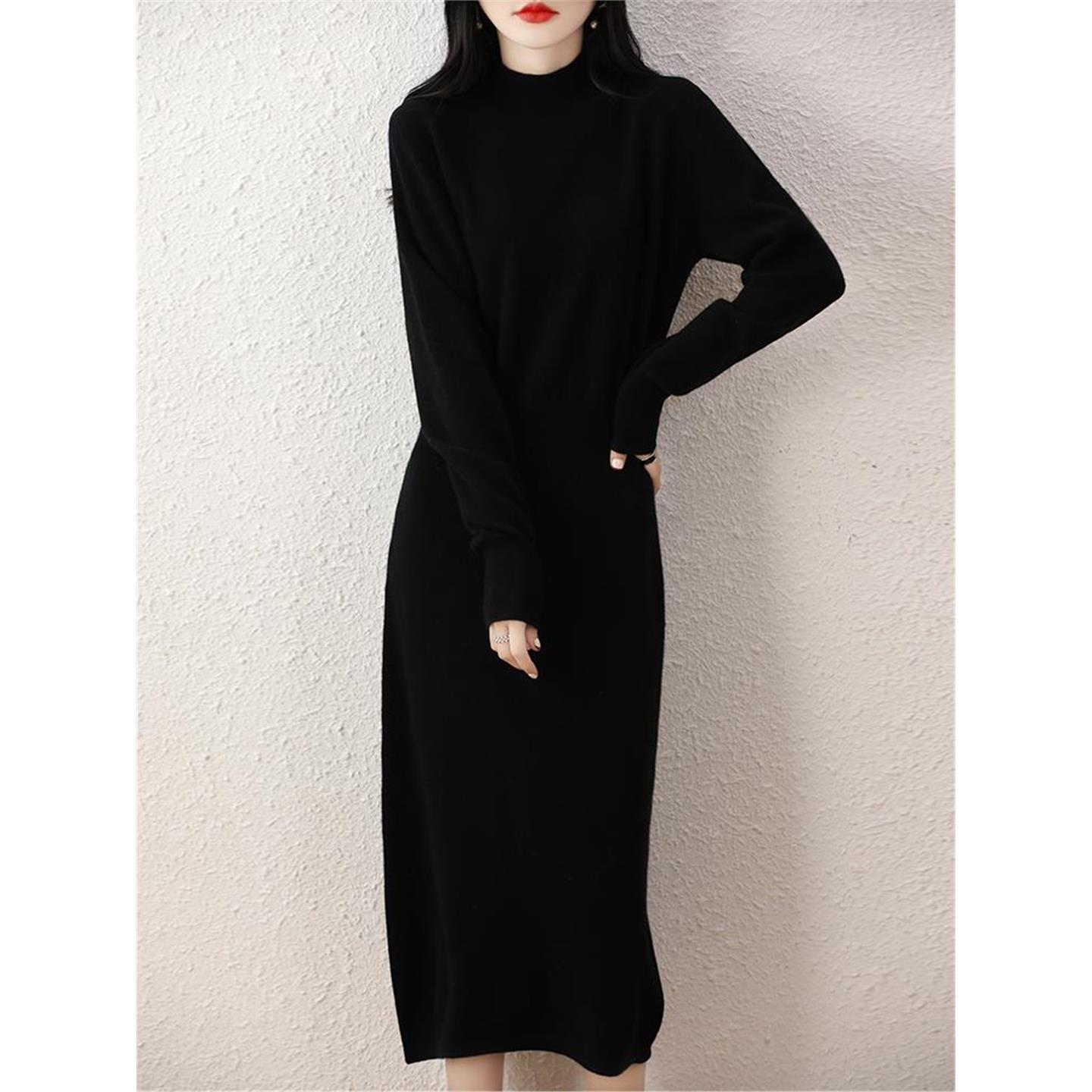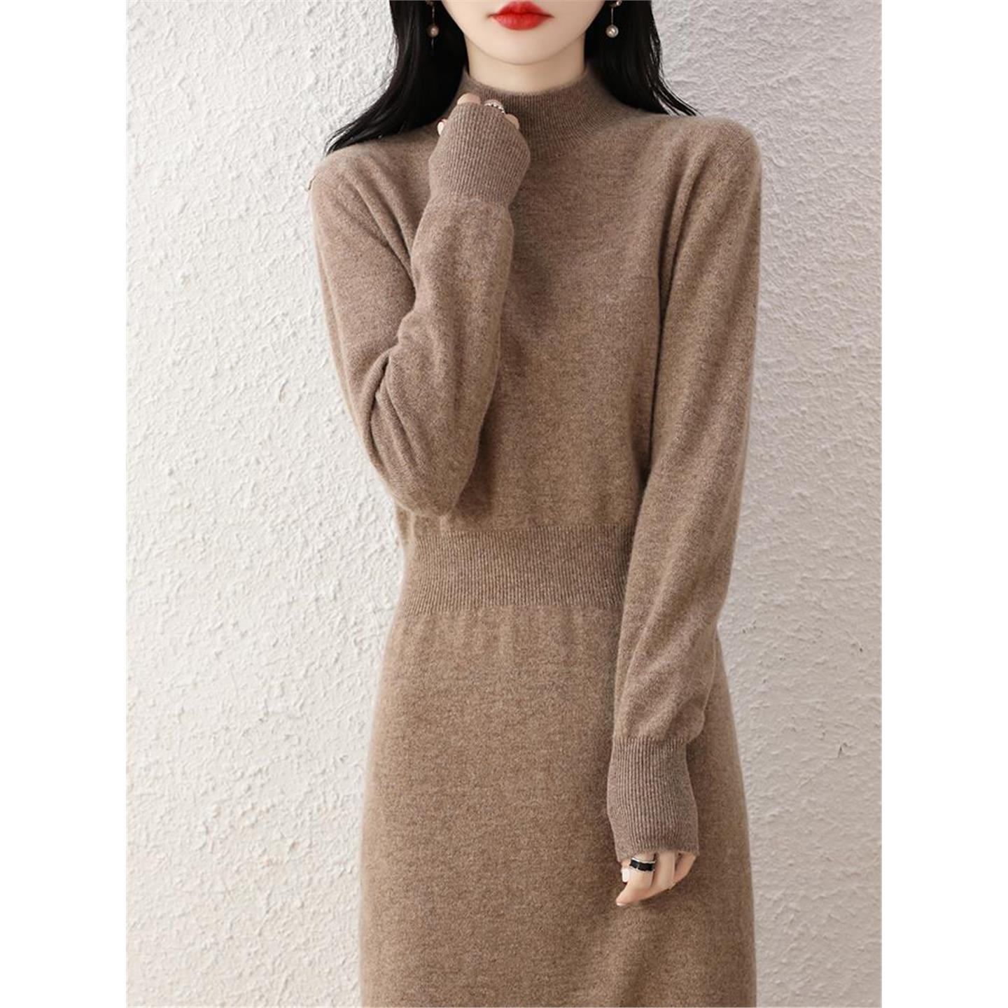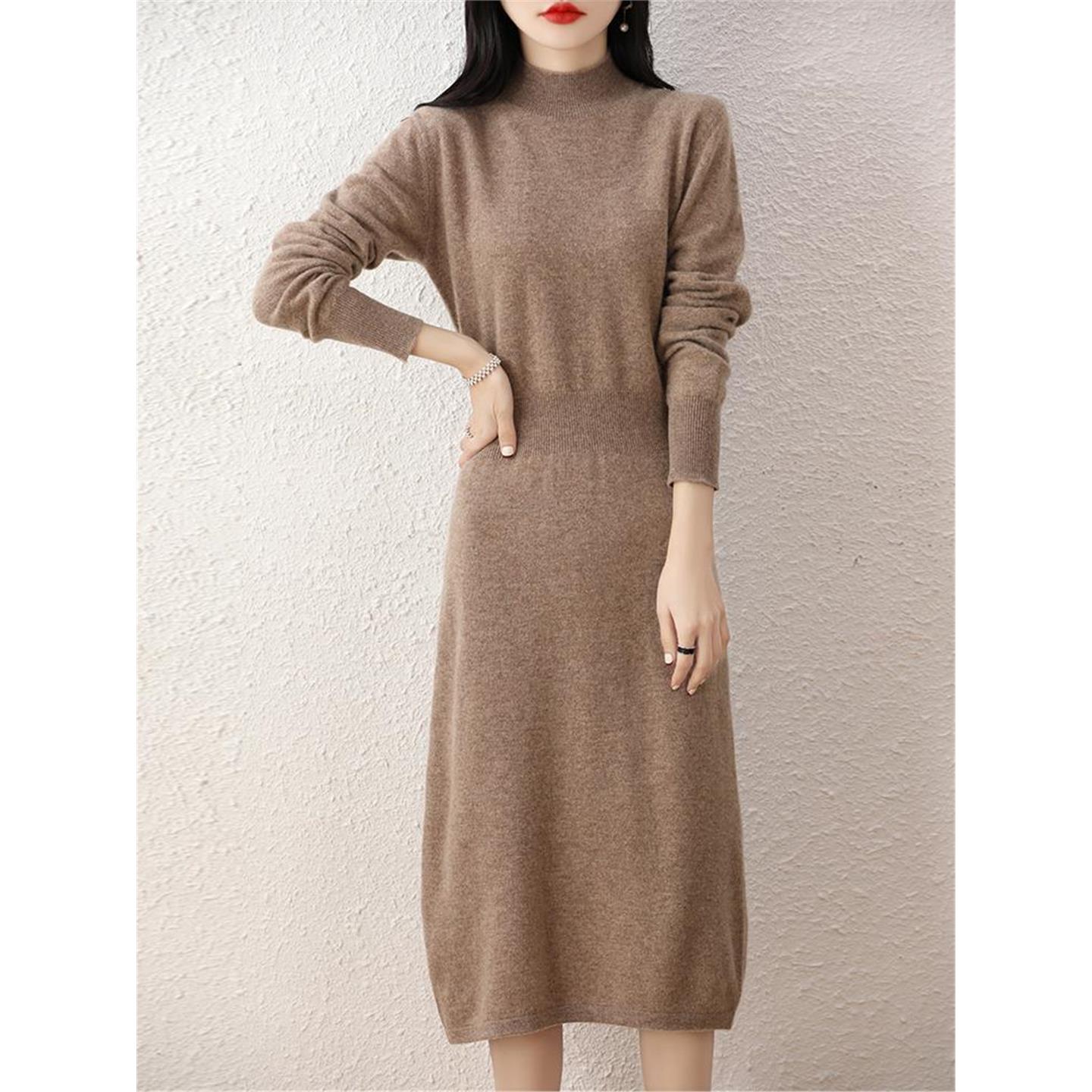 温柔半高领针织连衣裙加厚宽松打底裙大衣内搭流苏毛衣裙女秋冬季