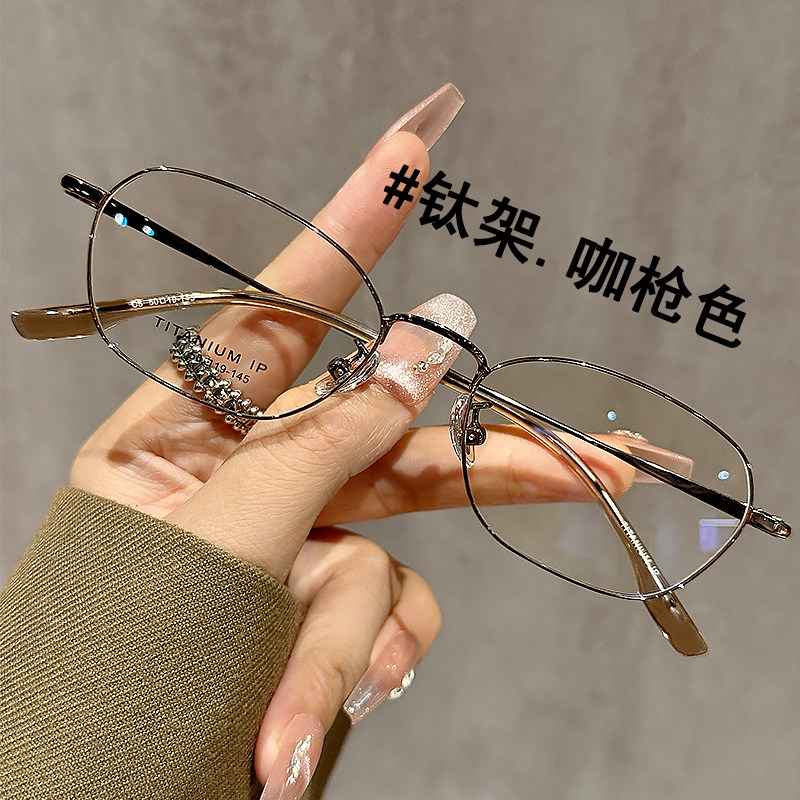 钛架玫瑰金小脸眼镜近视女可配高度数散光镜片素颜神器显瘦气质女