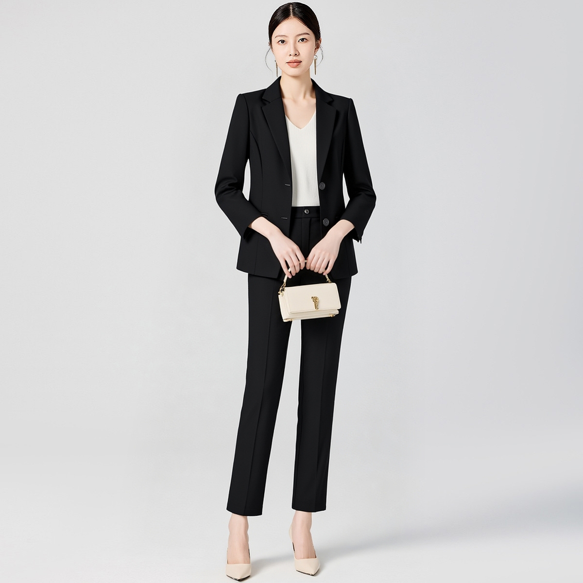 【上衣+裤子】罗蒙女士套装商务通勤舒适易打理行政修身西服套装