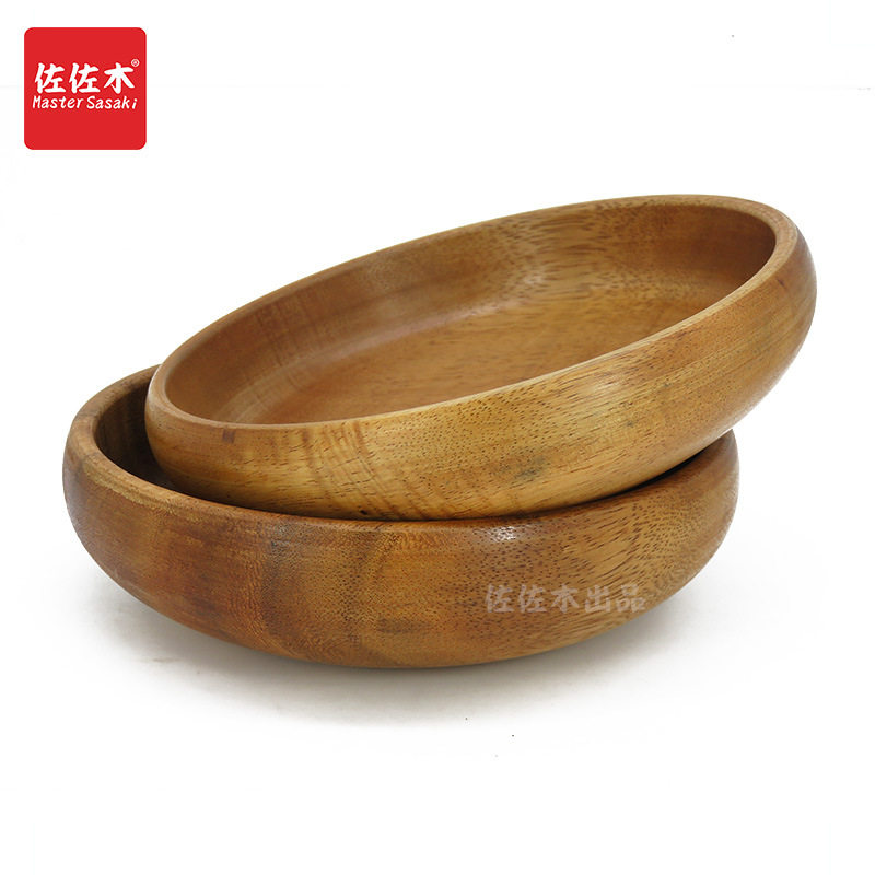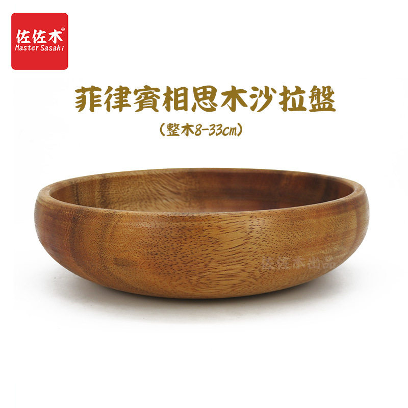 进口原木沙拉碗 实木浅盘 木钵大木碗水果盘 沙拉木质盘 大沙拉盘