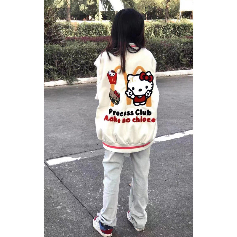 国潮美式kt猫棒球服外套女春秋2024新款宽松oversize潮牌高街夹克