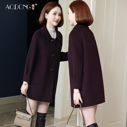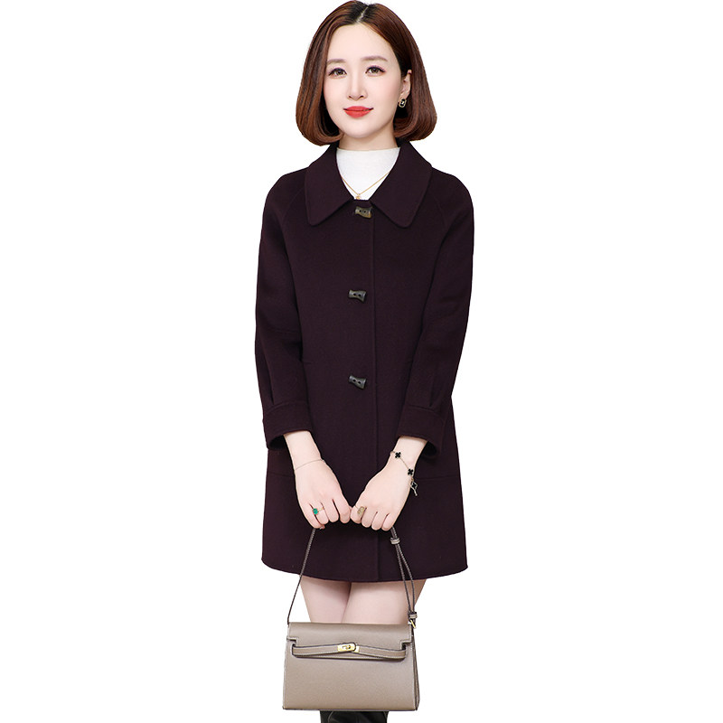 高端双面绒大衣女中长款修身中老年妈妈羊毛呢显瘦娃娃领外套秋冬