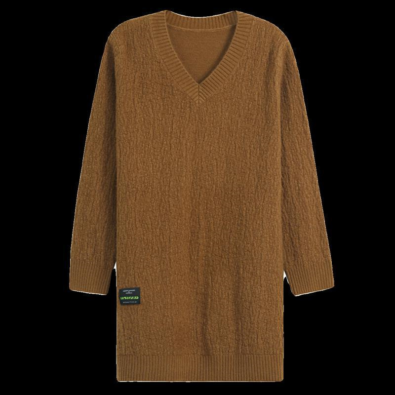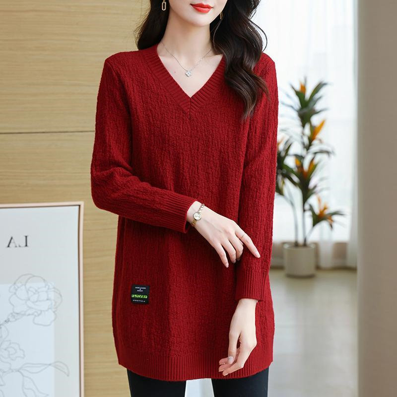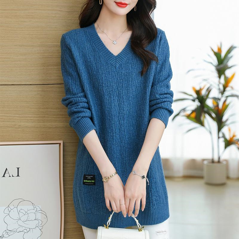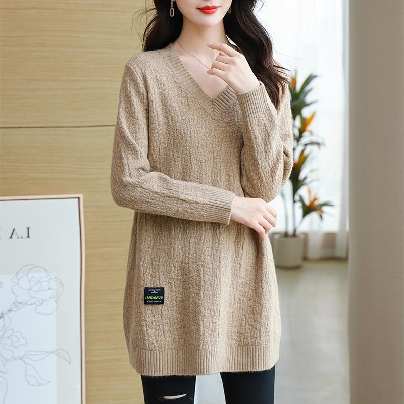 秋冬季300斤特大码宽松中长款纯色V领简约风胖MM针织毛衣衫女装潮