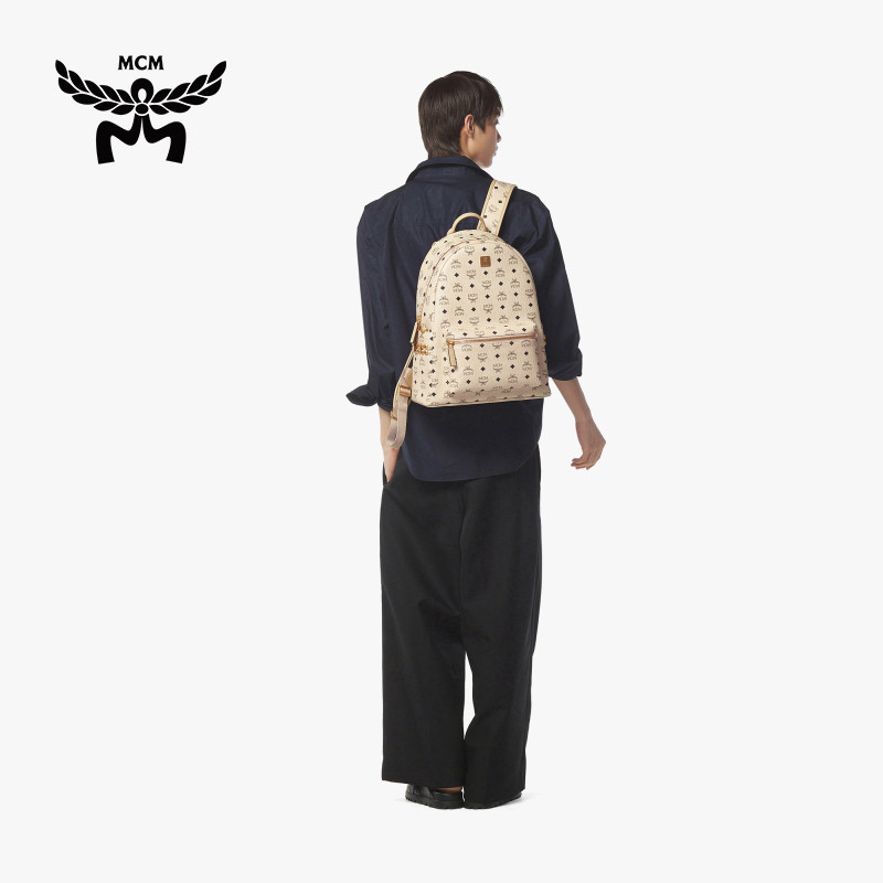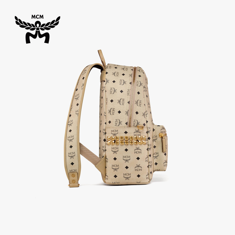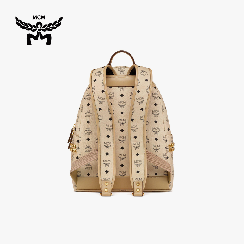 [新年礼物]MCM STARK中号侧饰铆钉双肩背包时尚通勤出游百搭女包