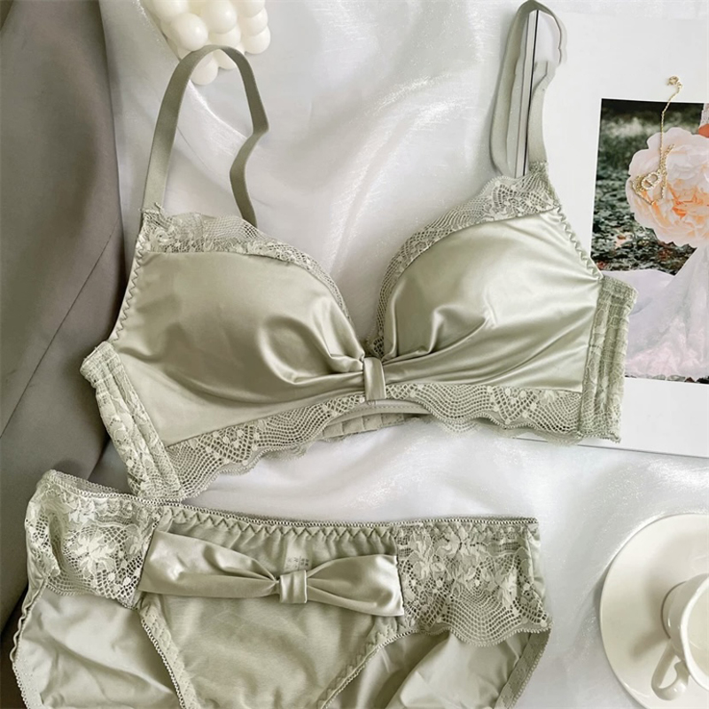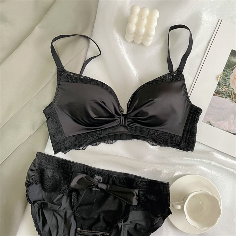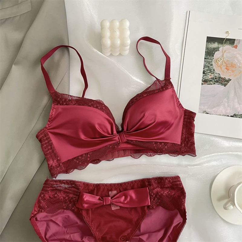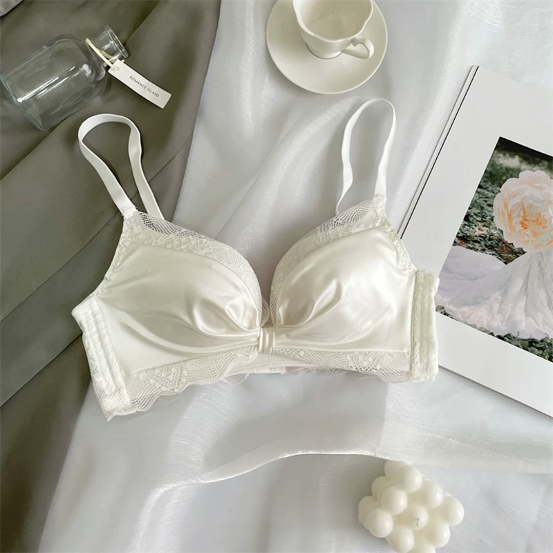 时空恋人 蕾丝内衣少女无痕缎面无钢圈聚拢小胸性感纯欲文胸套装