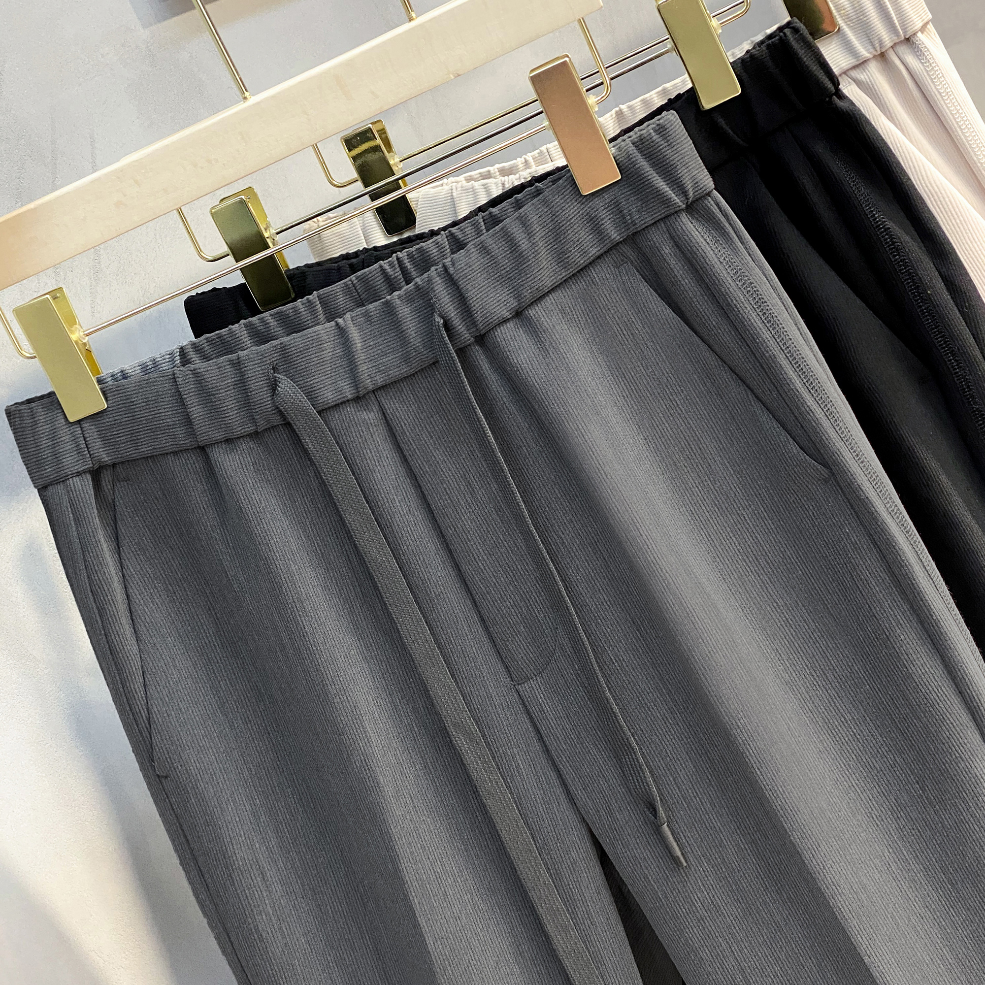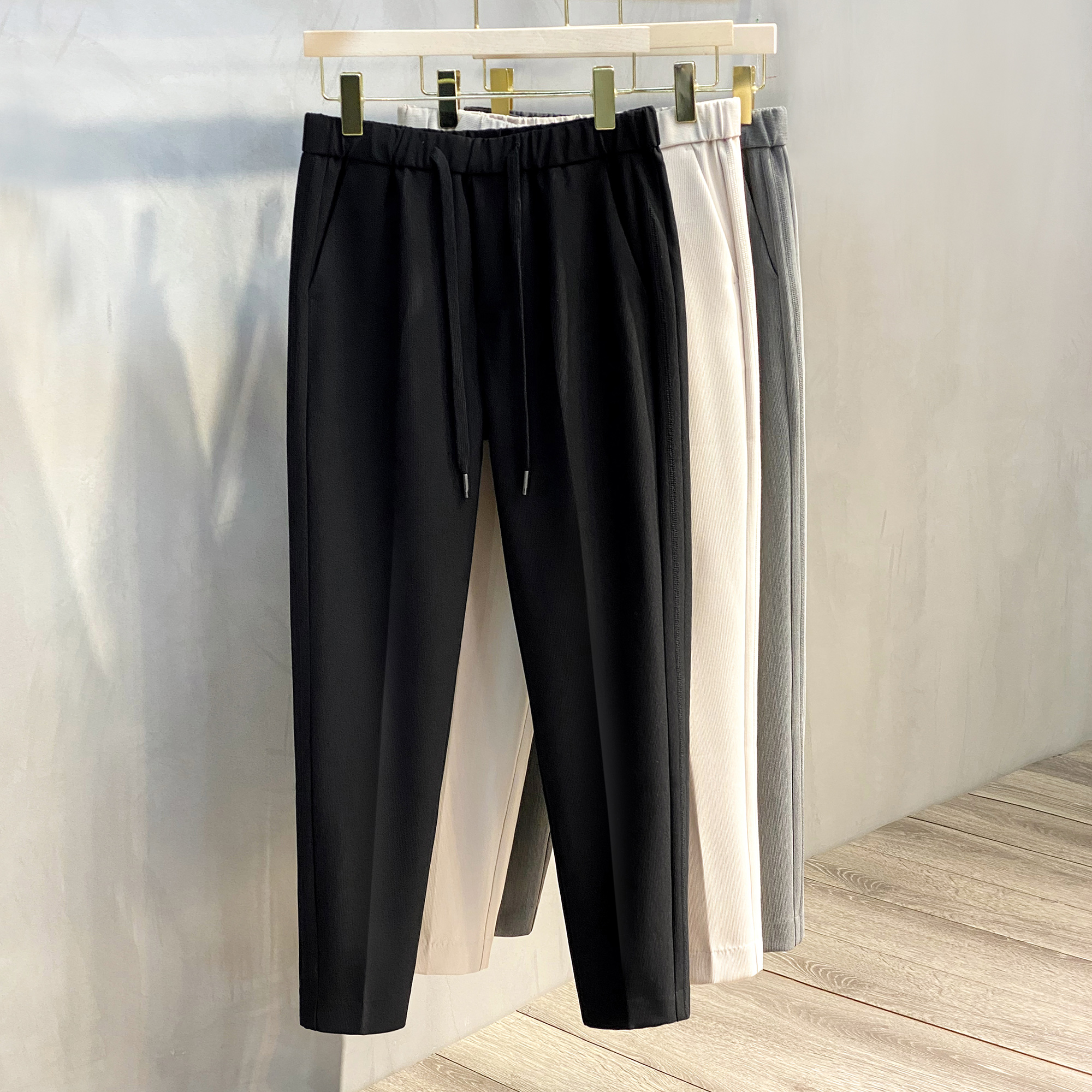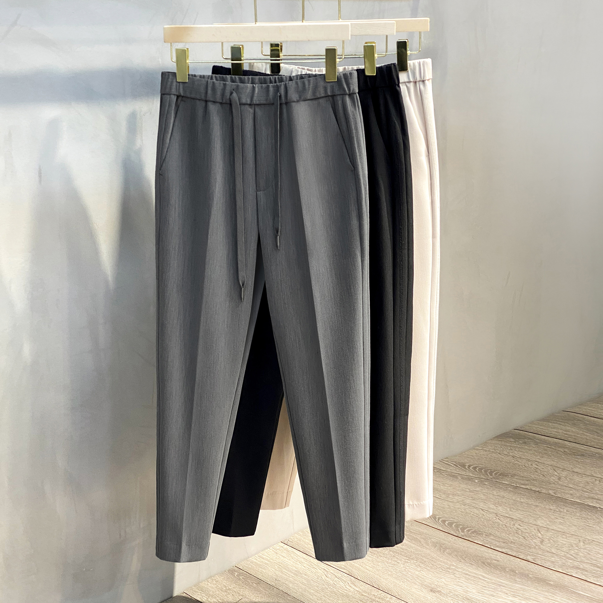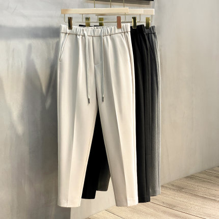 2025春秋丝光条纹路男士直筒休闲裤韩版小西裤潮流长裤小脚九分裤