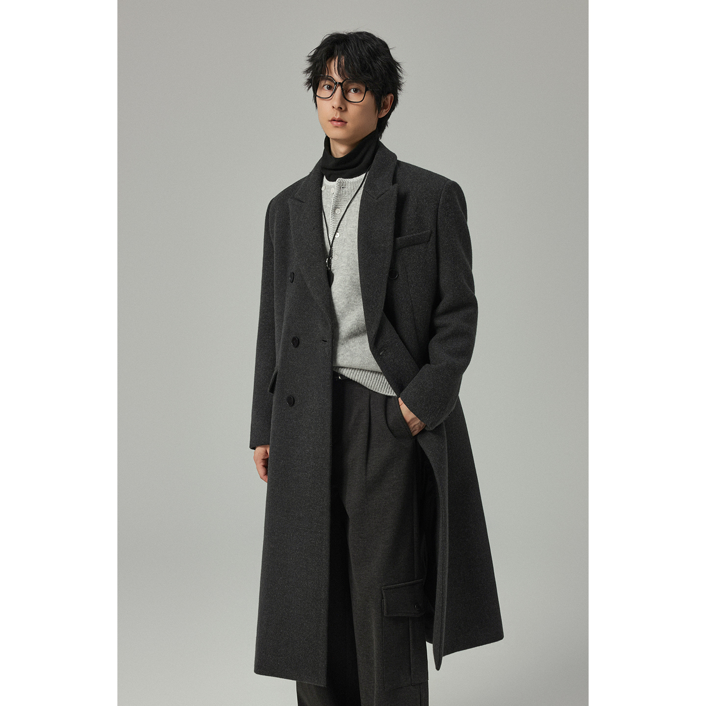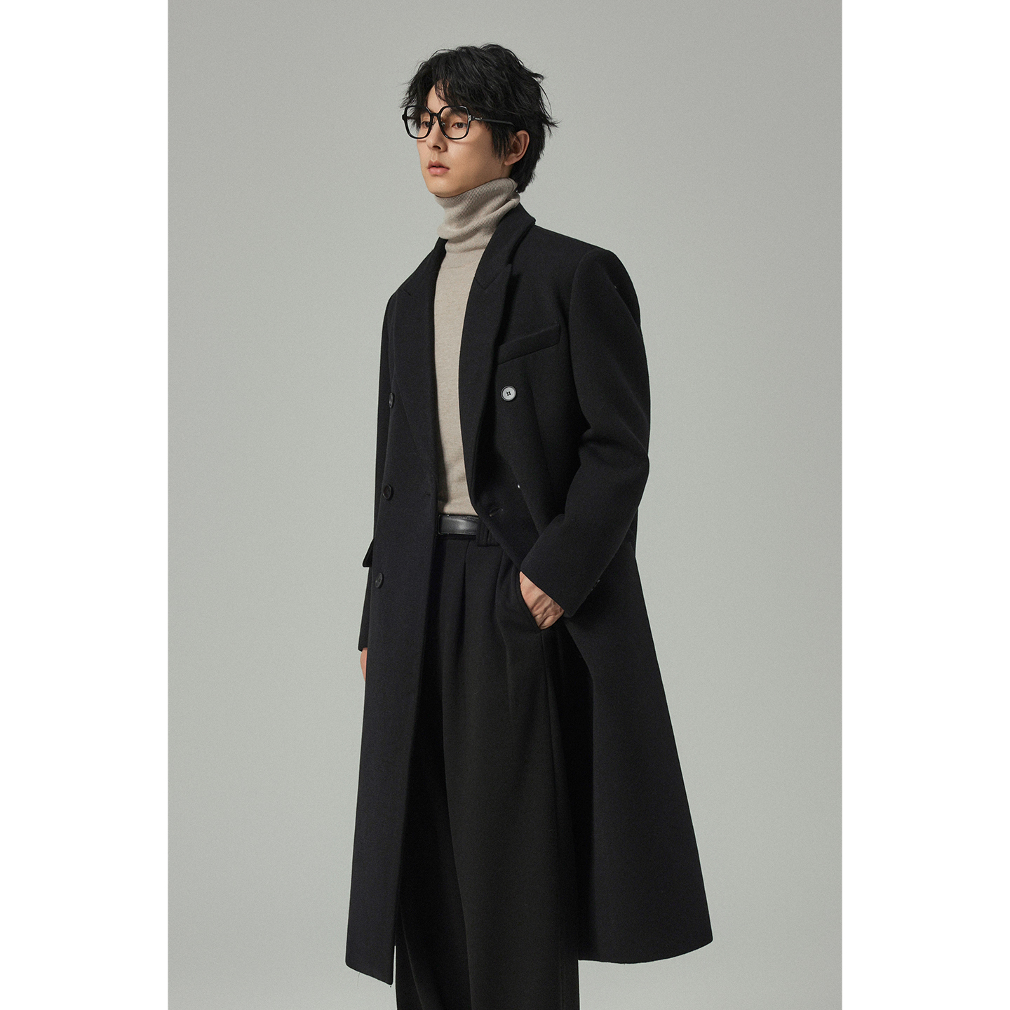 w2x冬季加厚2025新款戗驳领羊毛呢大衣男长款过膝外套呢子风衣潮