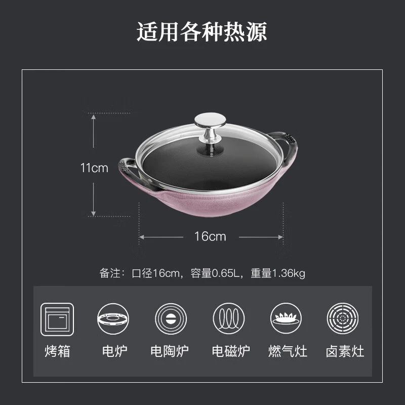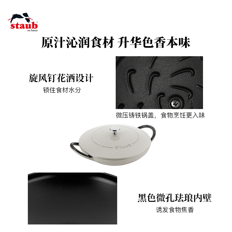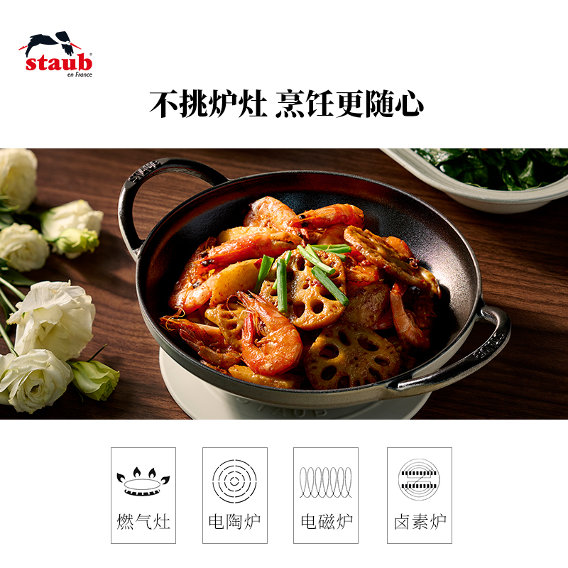 staub珐琅无涂层健康不易粘锅炒锅平底铁锅炒菜锅家用轻便