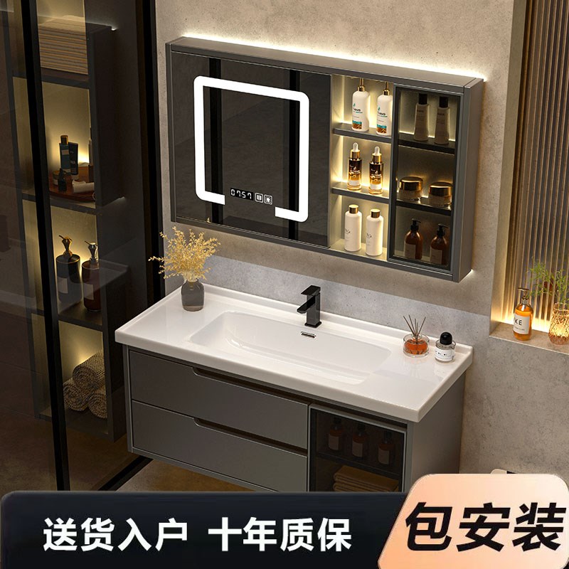 轻奢现代陶瓷一体盆浴室柜简约卫生间组合洗手池洗脸盆洗漱
