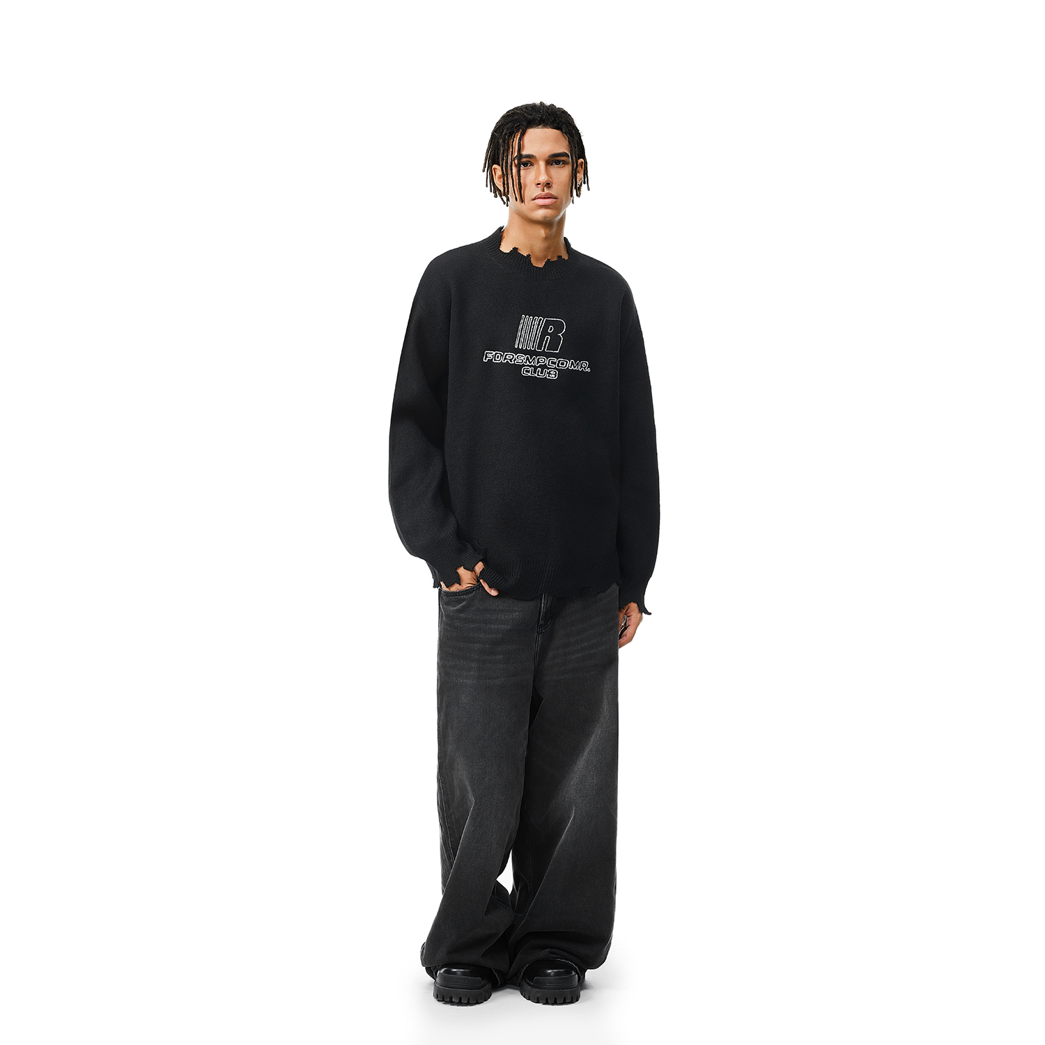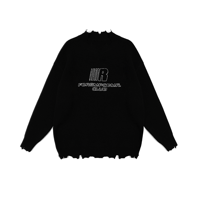 FDR官方店 R字镂空绣花毛衣男女秋冬季美式运动宽松情侣装上衣