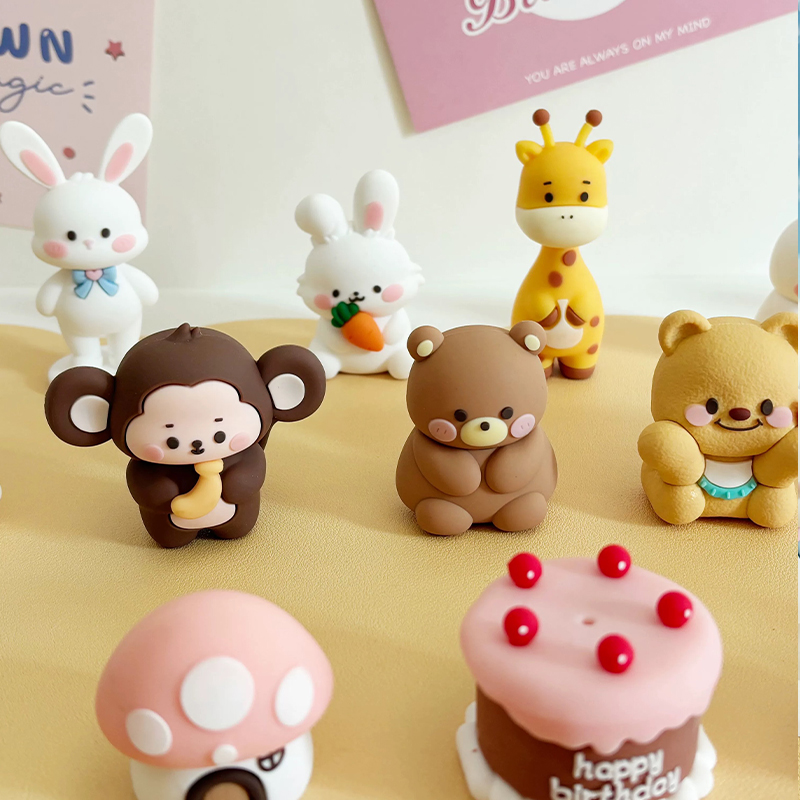卡通森系动物生日蛋糕装饰软胶小熊小兔蘑菇屋萝卜兔狮子大象摆件