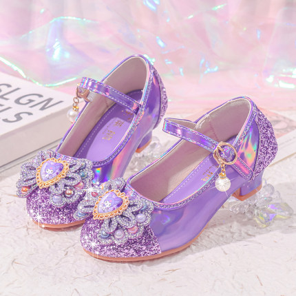 女童高跟单鞋公主水晶鞋紫色粉色