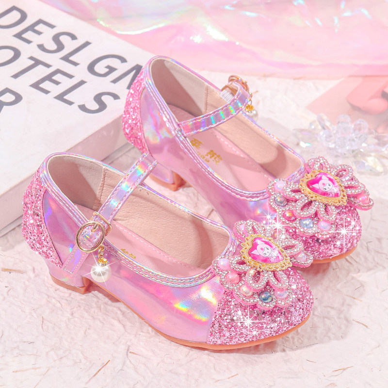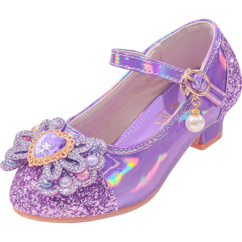 女童单鞋公主水晶鞋紫色粉色库洛米小女孩皮鞋模特走秀儿童高跟鞋