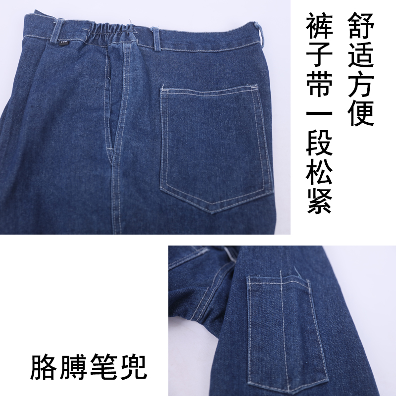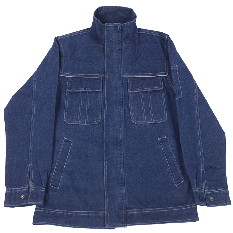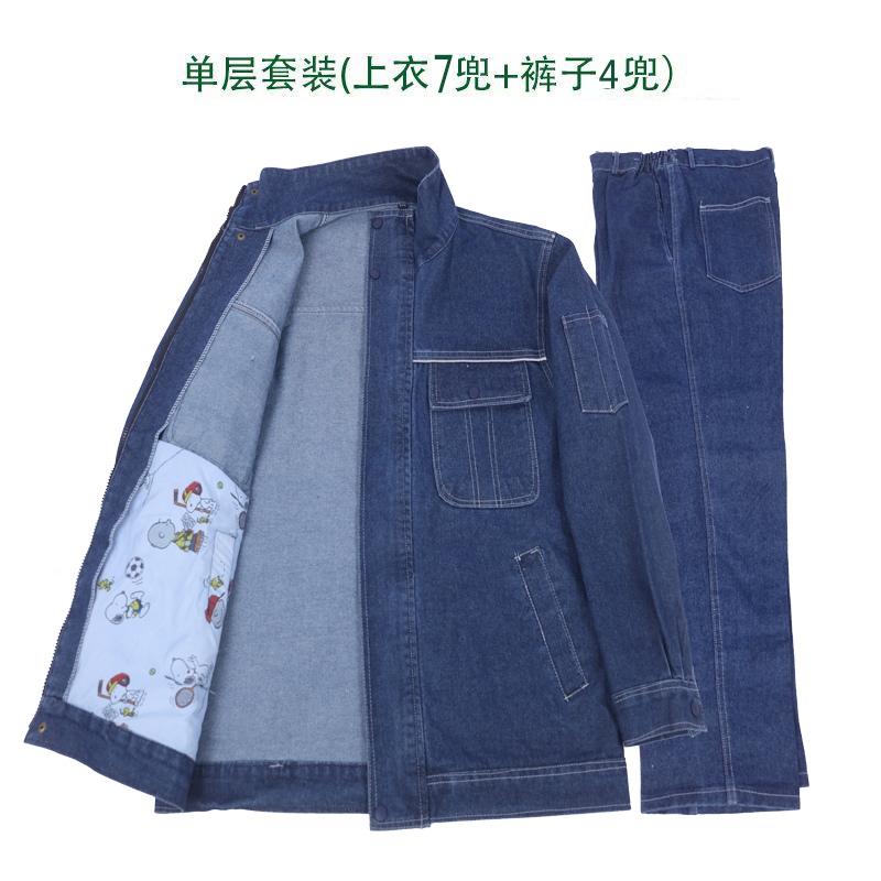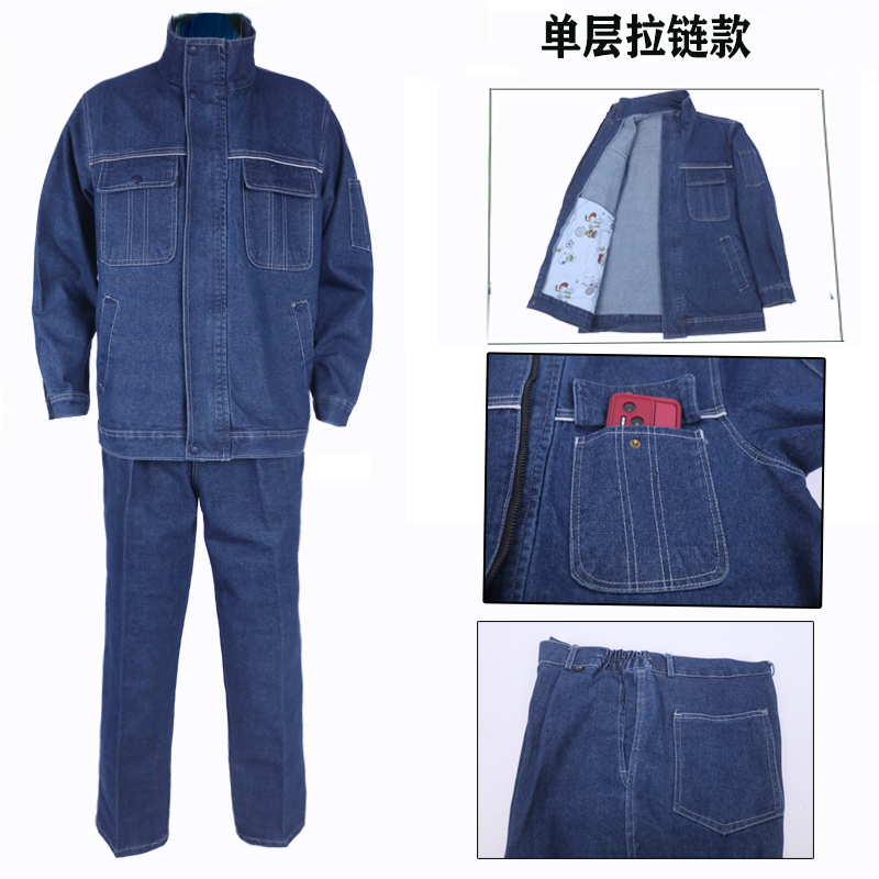 立领牛仔电焊工作服套装男电焊工耐磨车间焊工上衣防烫裤子劳保服