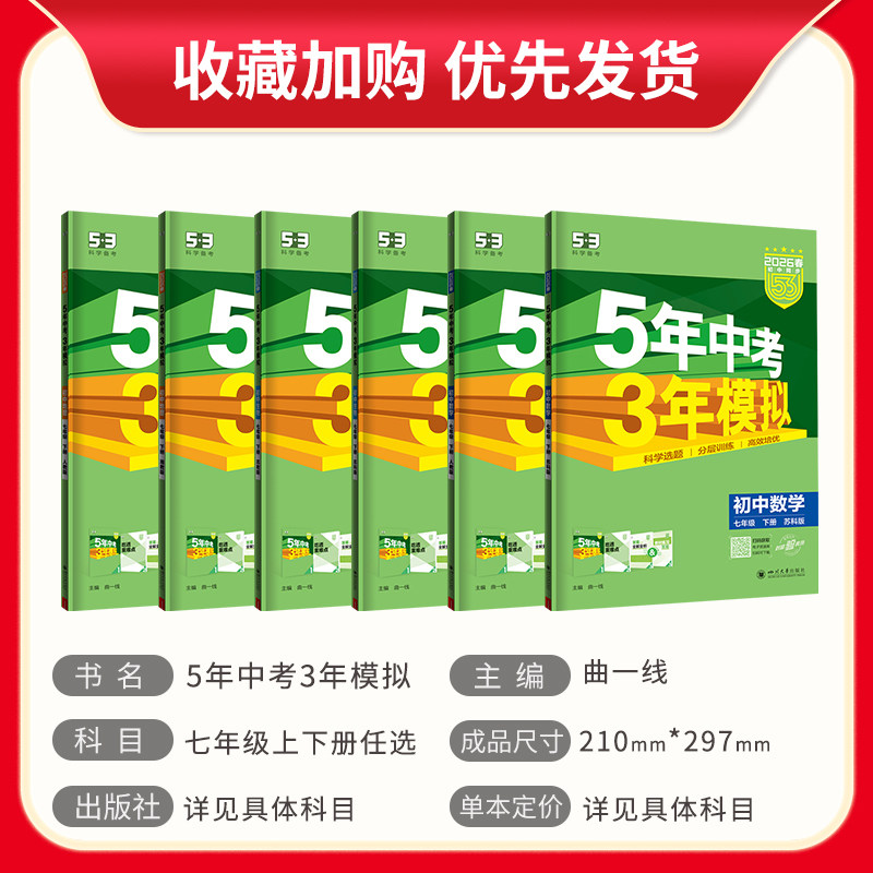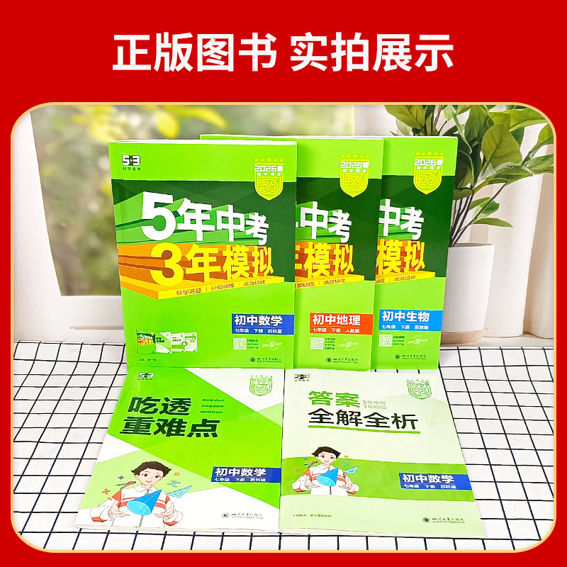 江苏版2026版五年中考三年模拟七年级上下册数学语文英语政治历史地理生物译林人教苏科版53初一同步练习册苏教版5年中考3年模拟