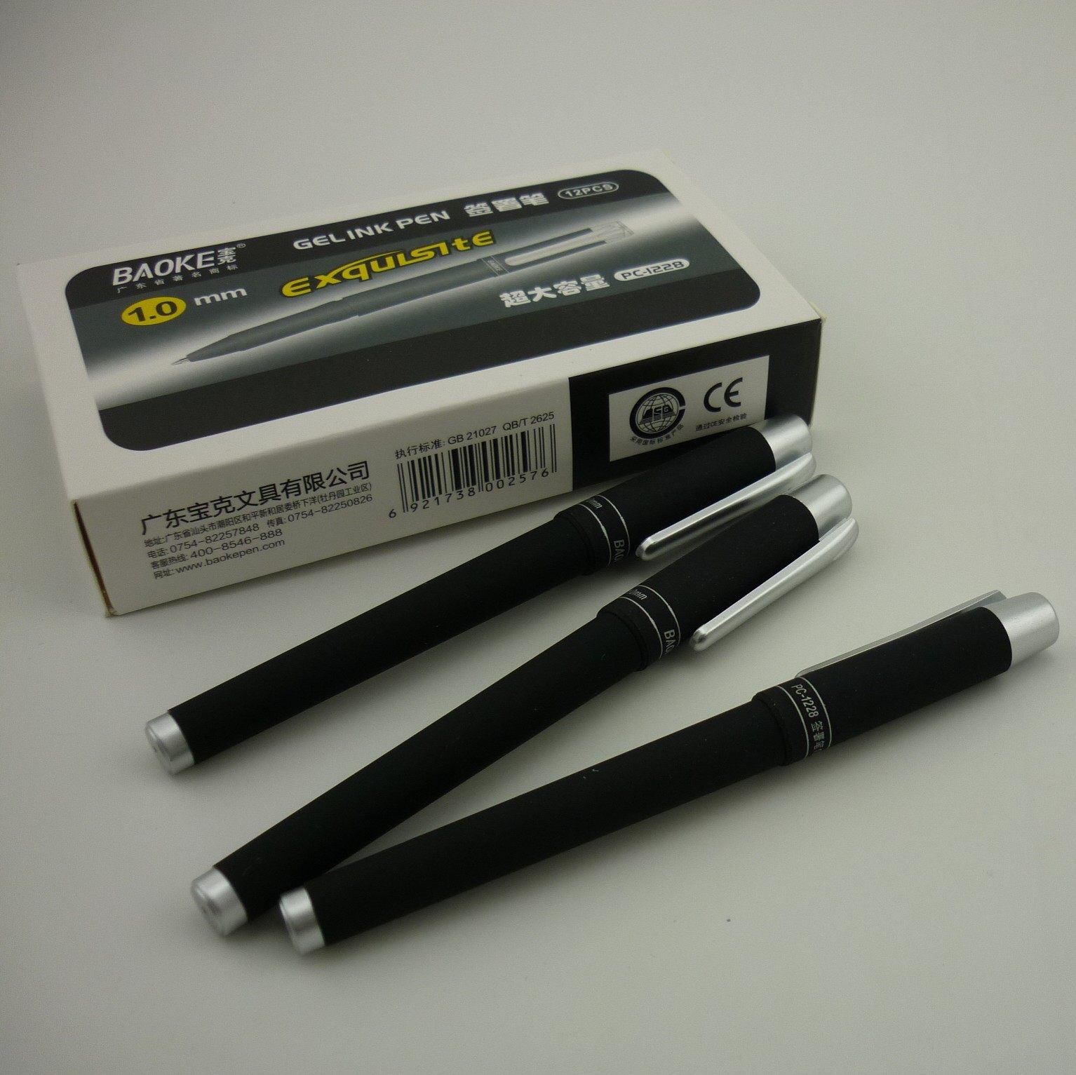 宝克1228中性笔 水笔 签字笔 磨砂杆 签名笔1.0mm 12支盒装纯黑色中性笔 支持企业广告定制印刷logo