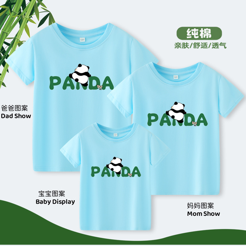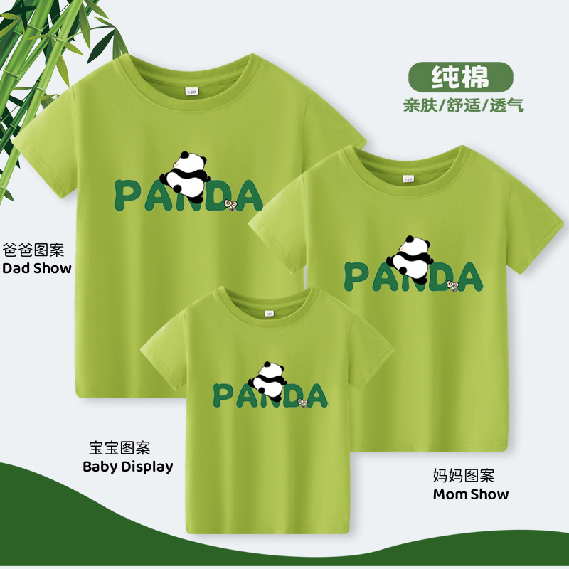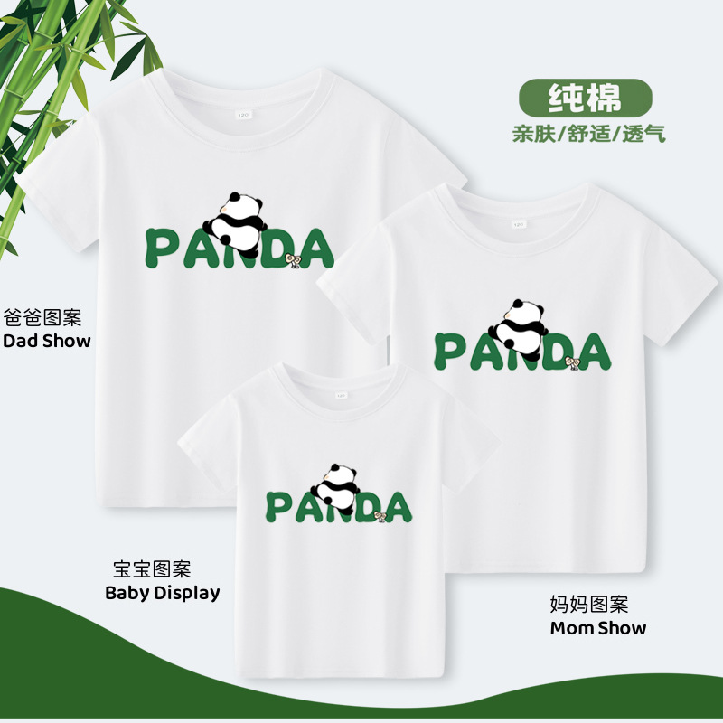 熊猫潮牌短袖t恤亲子装夏季新款一家三口四口休闲短袖上衣T恤