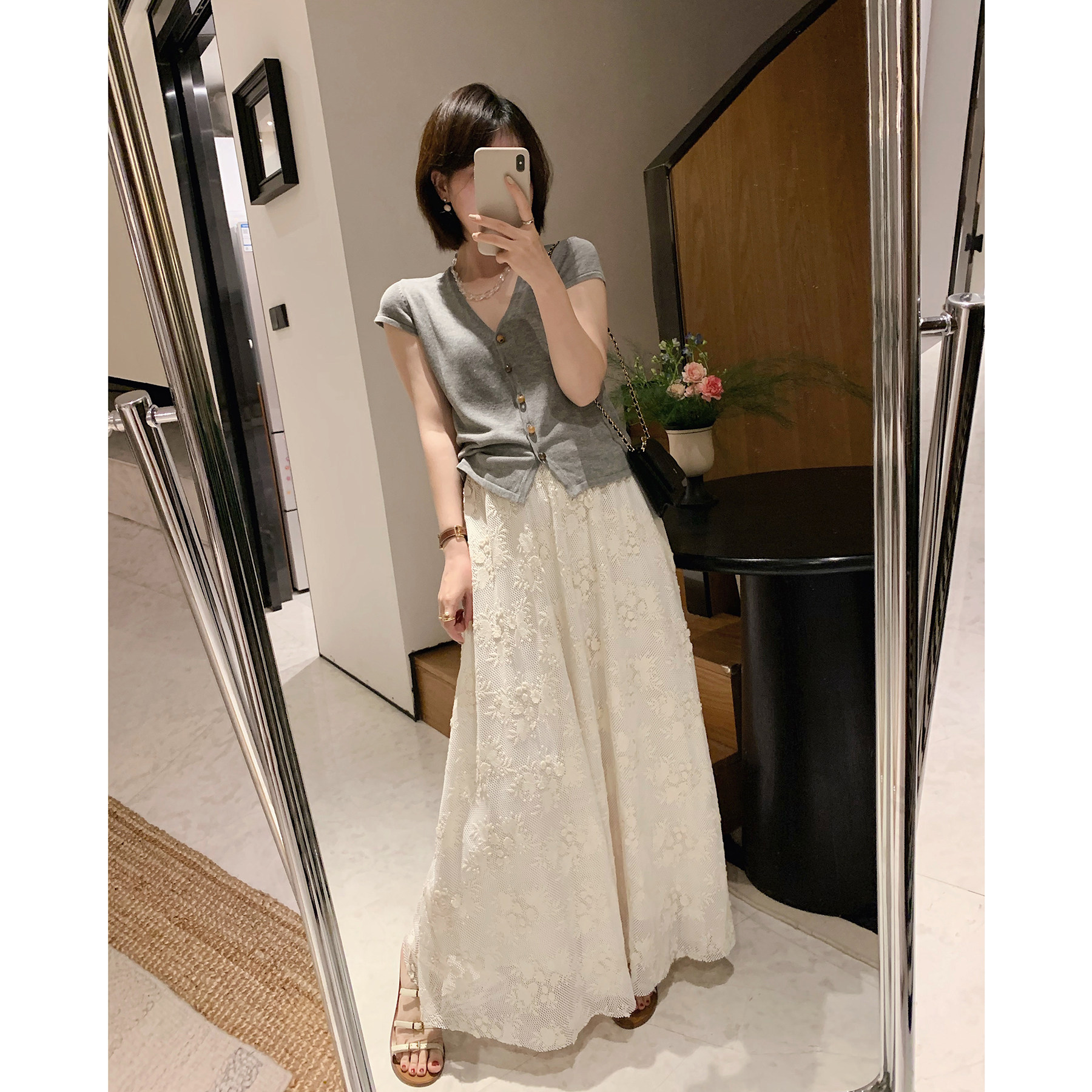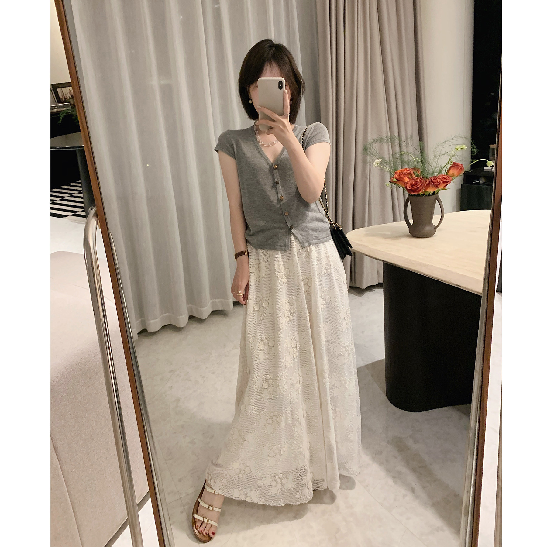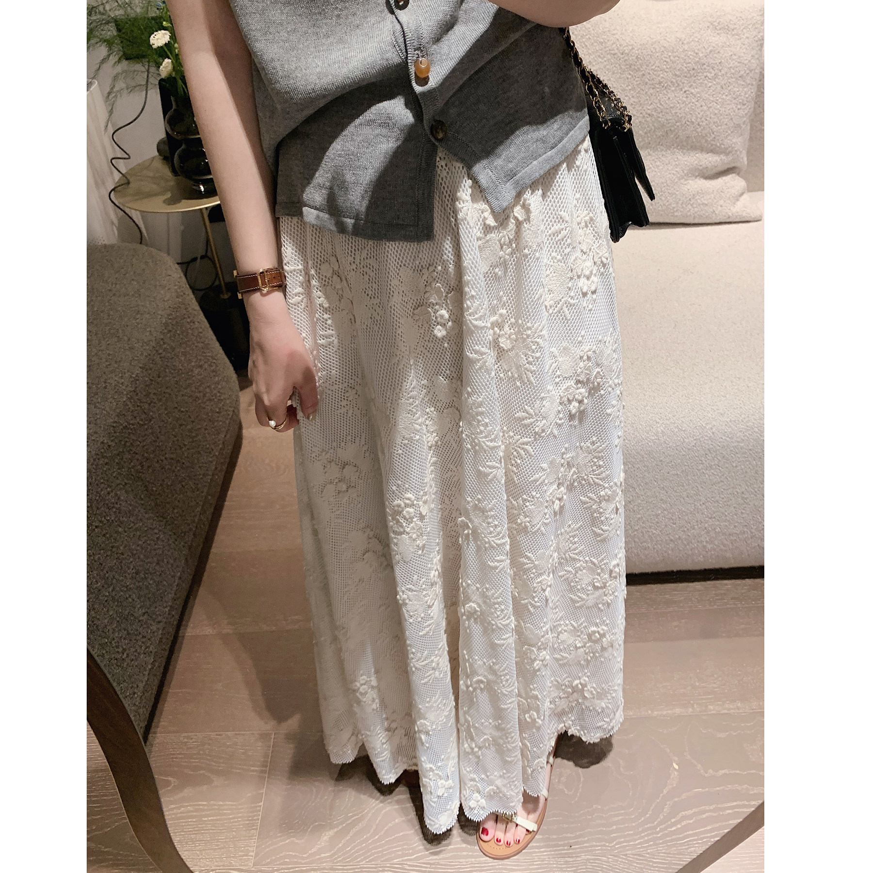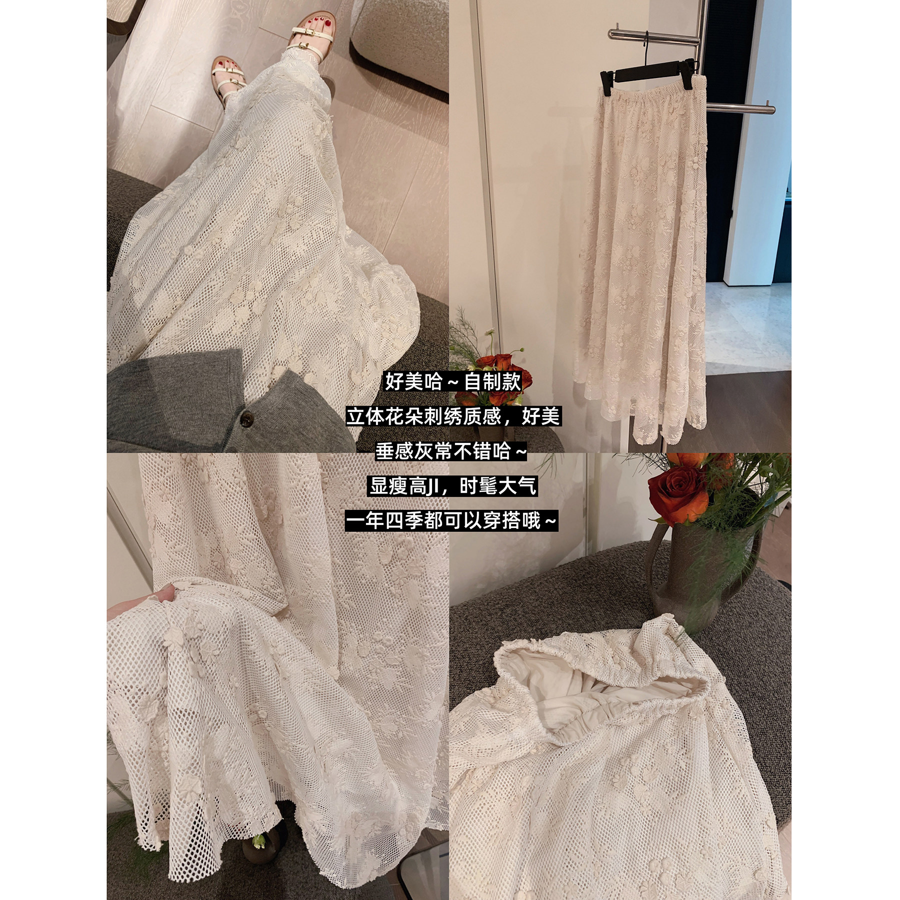 复古刺绣蕾丝中长款半身裙