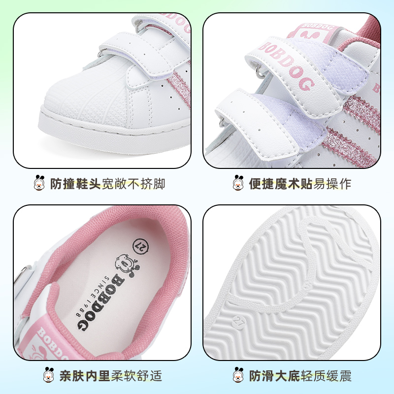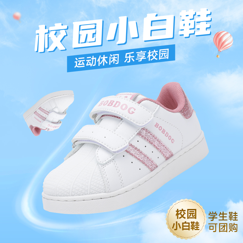 巴布豆童鞋女童小白鞋2025新款春秋款百搭女孩休闲鞋儿童运动鞋男