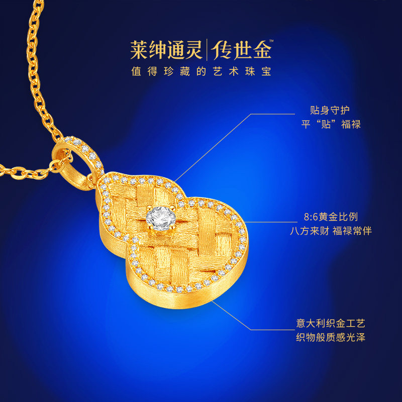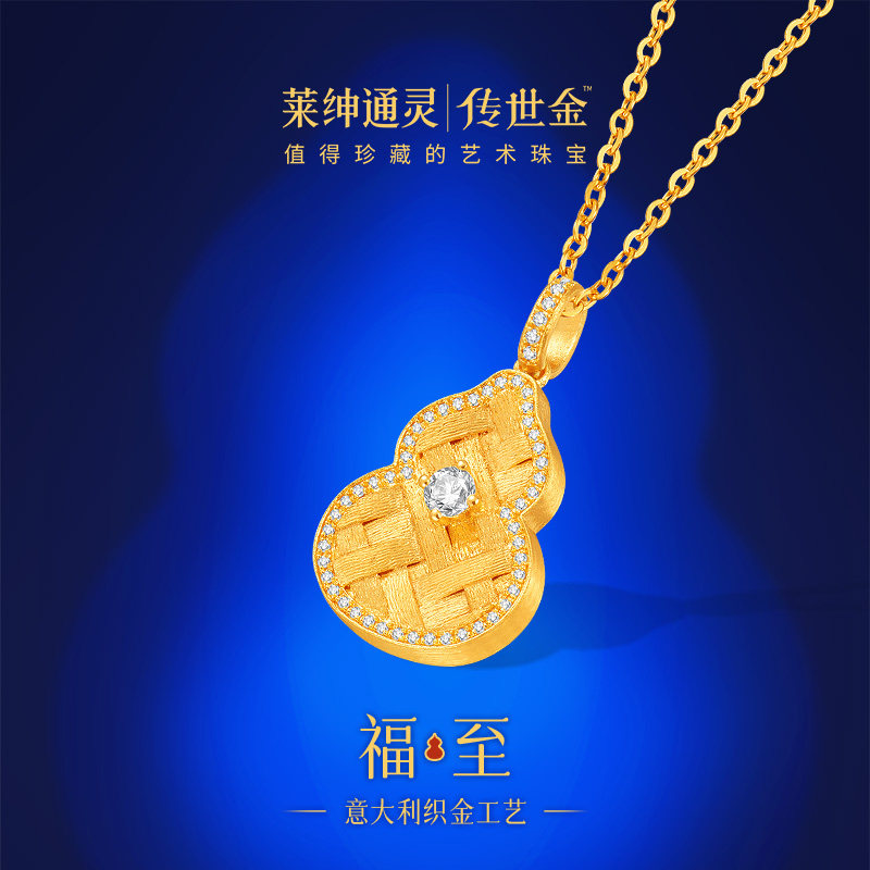 【商场同款】莱绅通灵福至明星同款鎏光织金葫芦足金黄金钻石项链