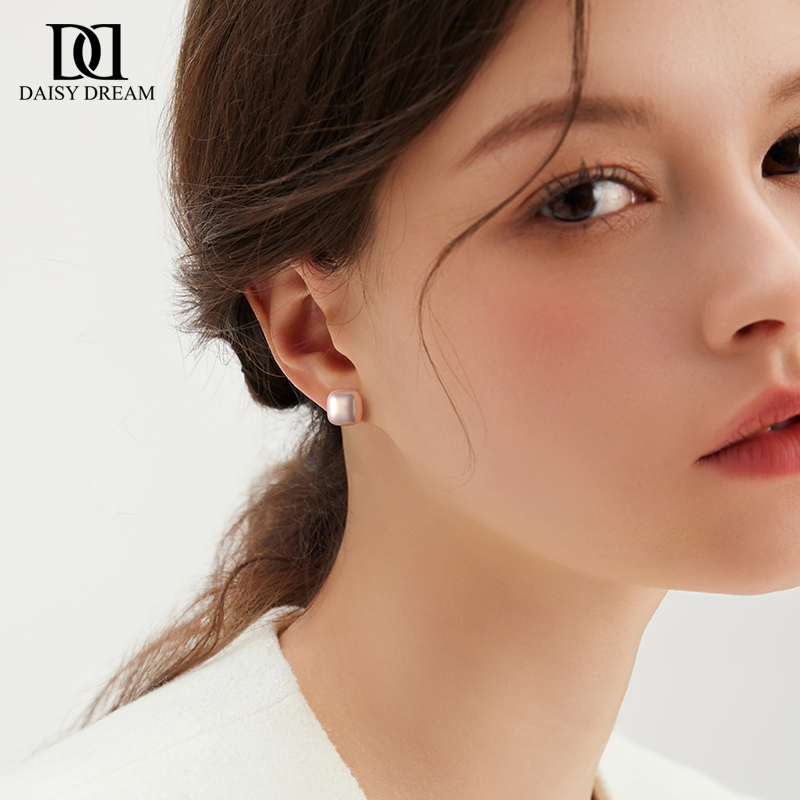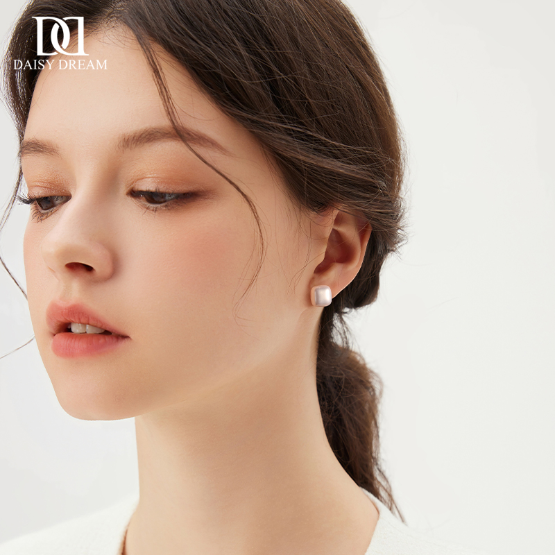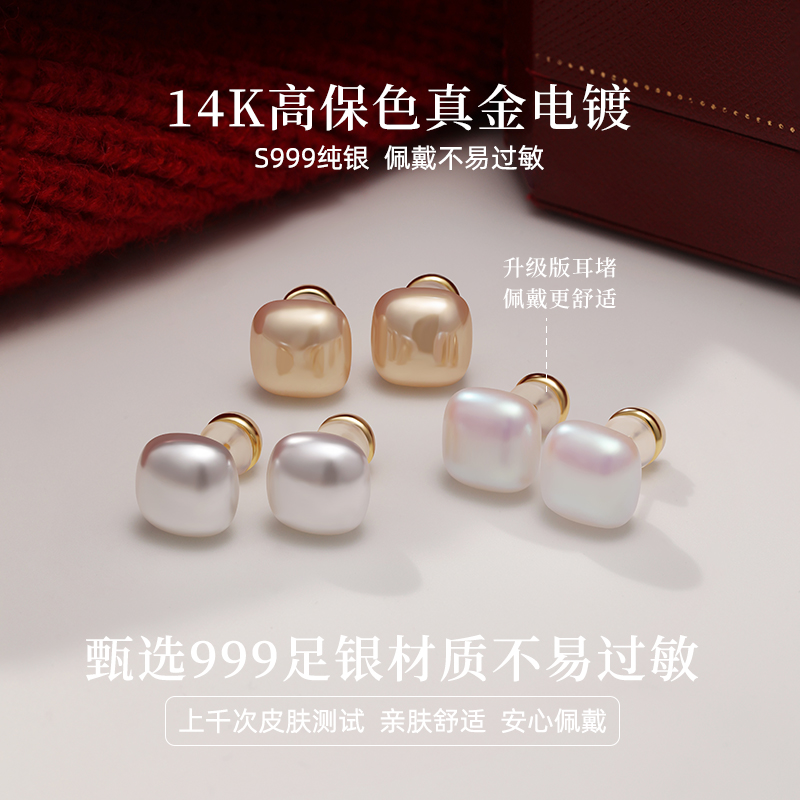 999纯银高级感小方糖珍珠耳钉女