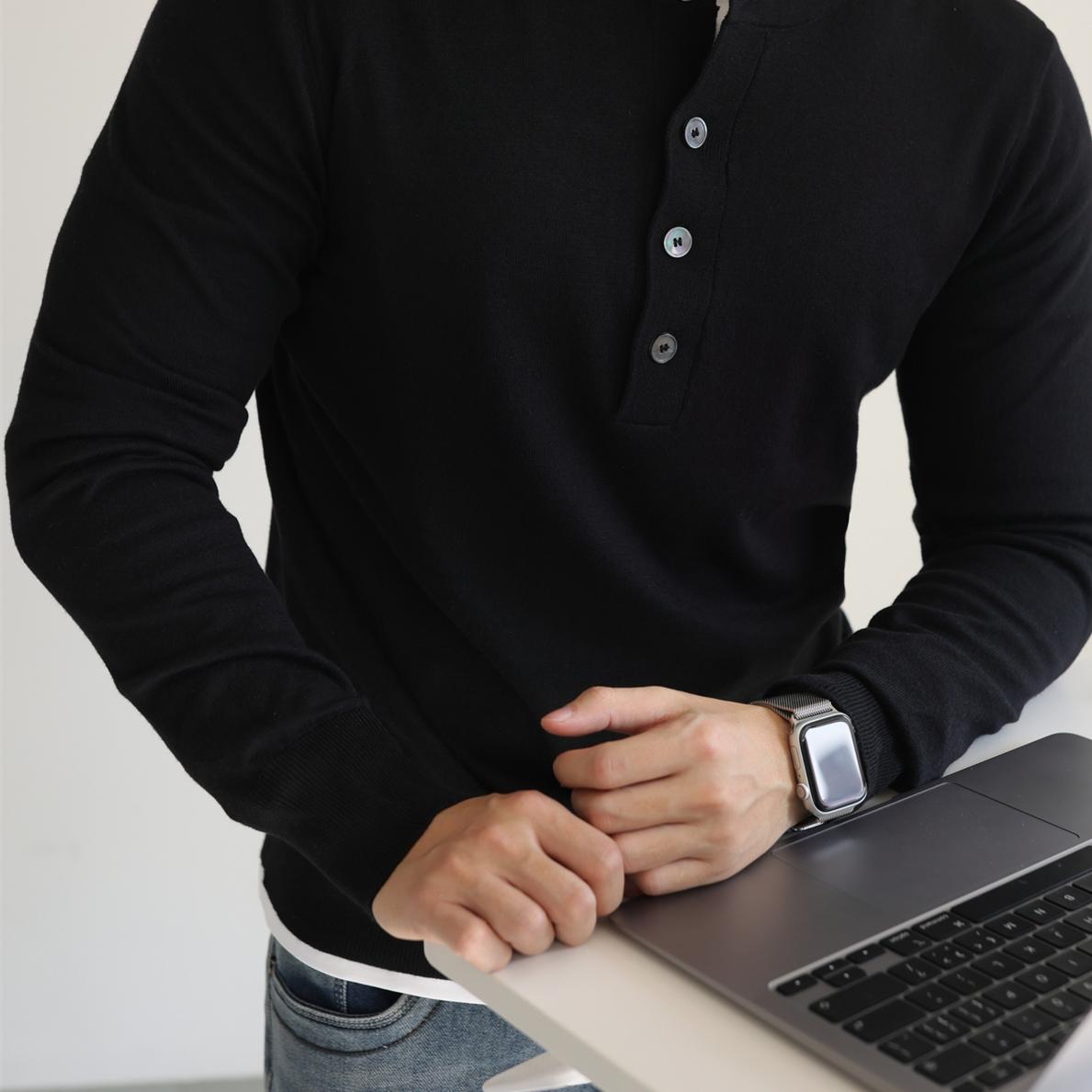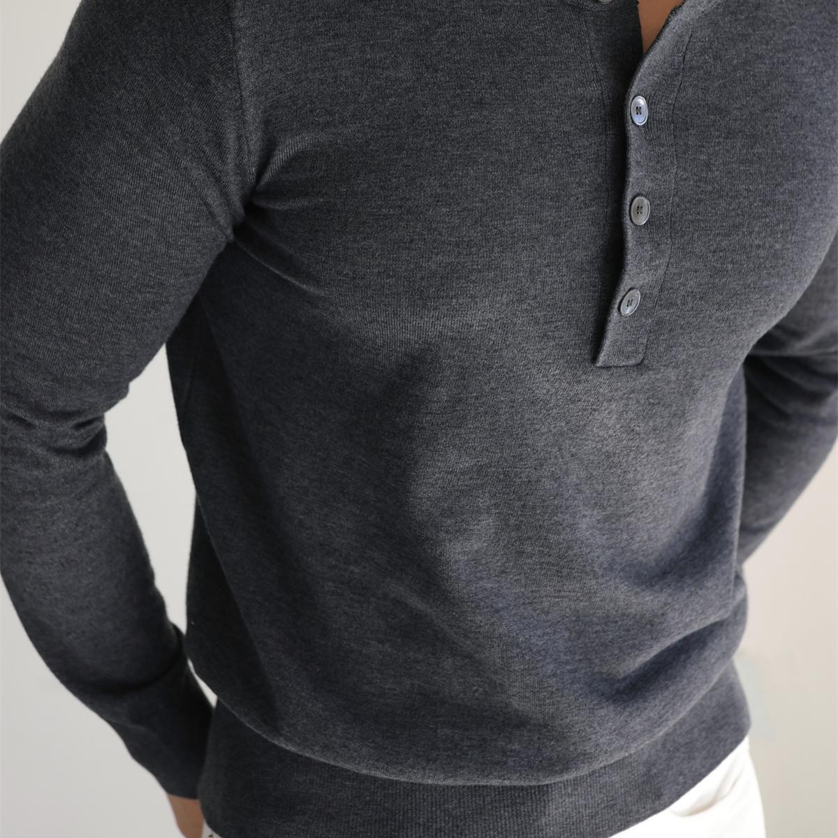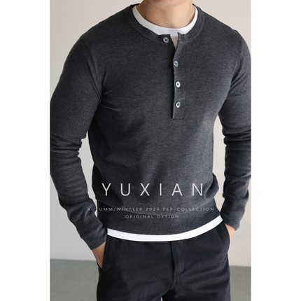 YUXIAN美式亨利领羊毛混纺男士复古圆领纽扣针织衫休闲商务男士