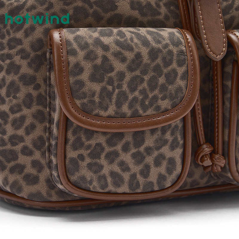 热风女士背包2025年冬季新款豹纹时尚潮流双肩包英伦风大容量包包