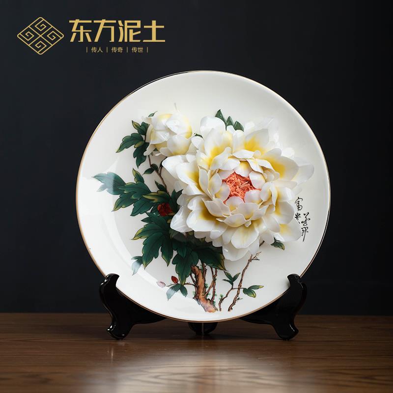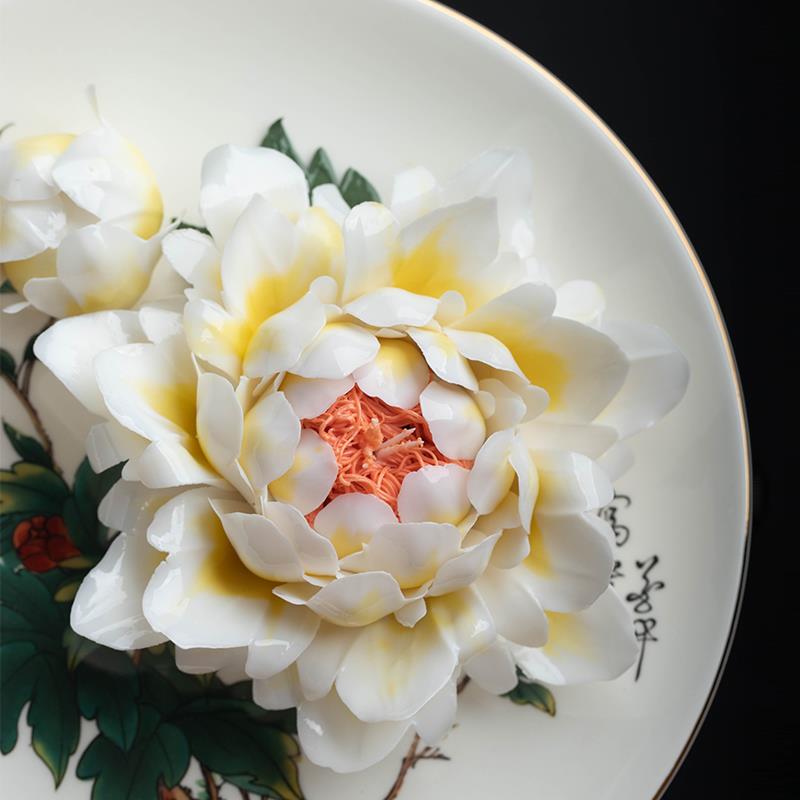 陶瓷牡丹花挂盘摆件 中式客厅装饰品 朋友同事送礼首选
