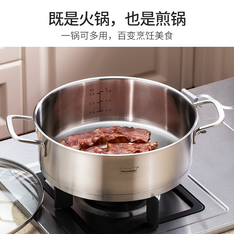 慕厨 火锅锅具304不锈钢加厚家用商用火锅汤锅电磁炉通用26cm