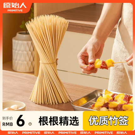 原始人烧烤长竹签羊肉串串烤肉一次性竹签子烧烤用具关东煮麻辣烫