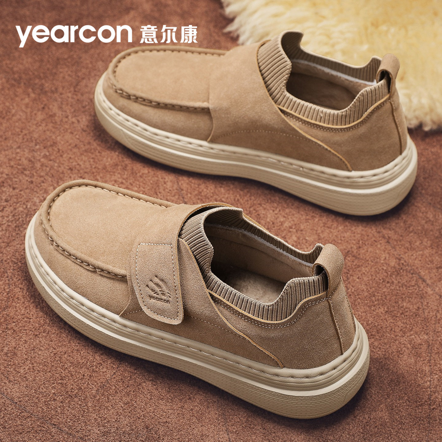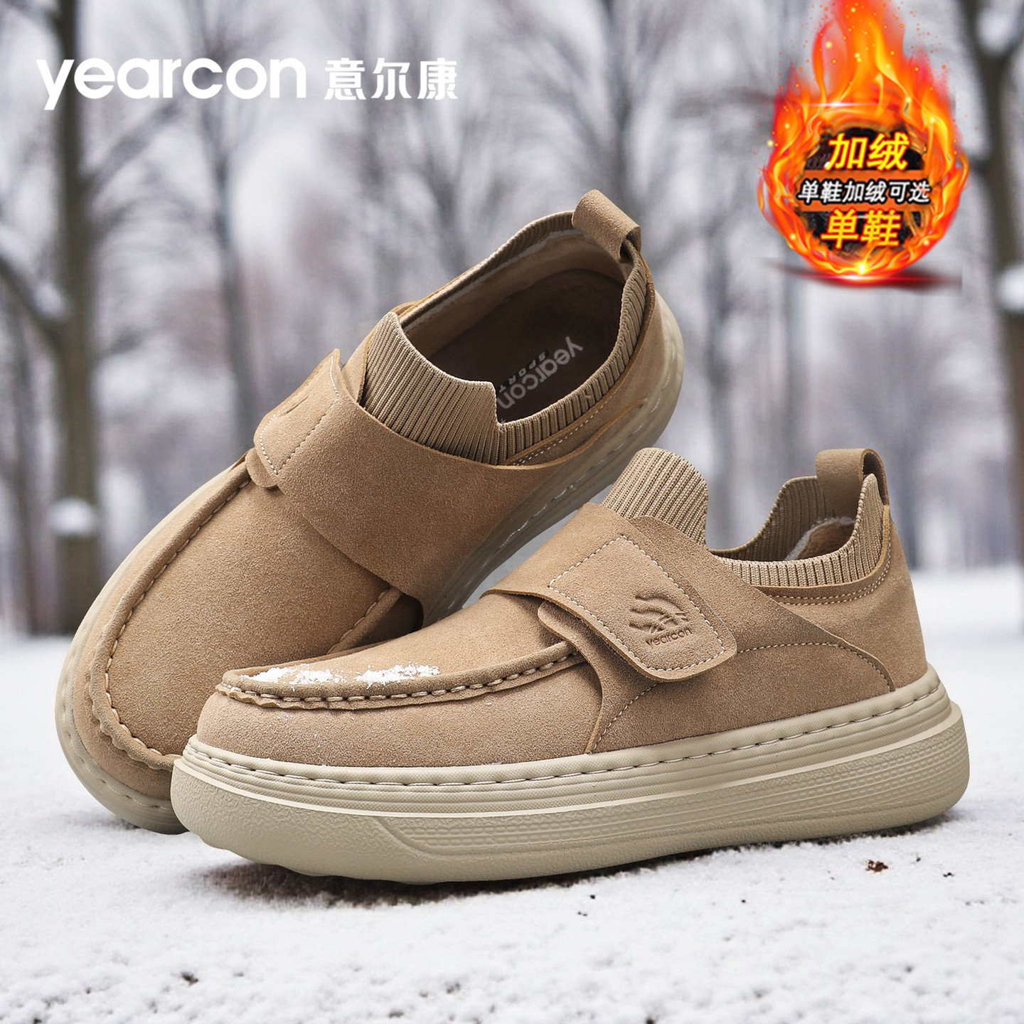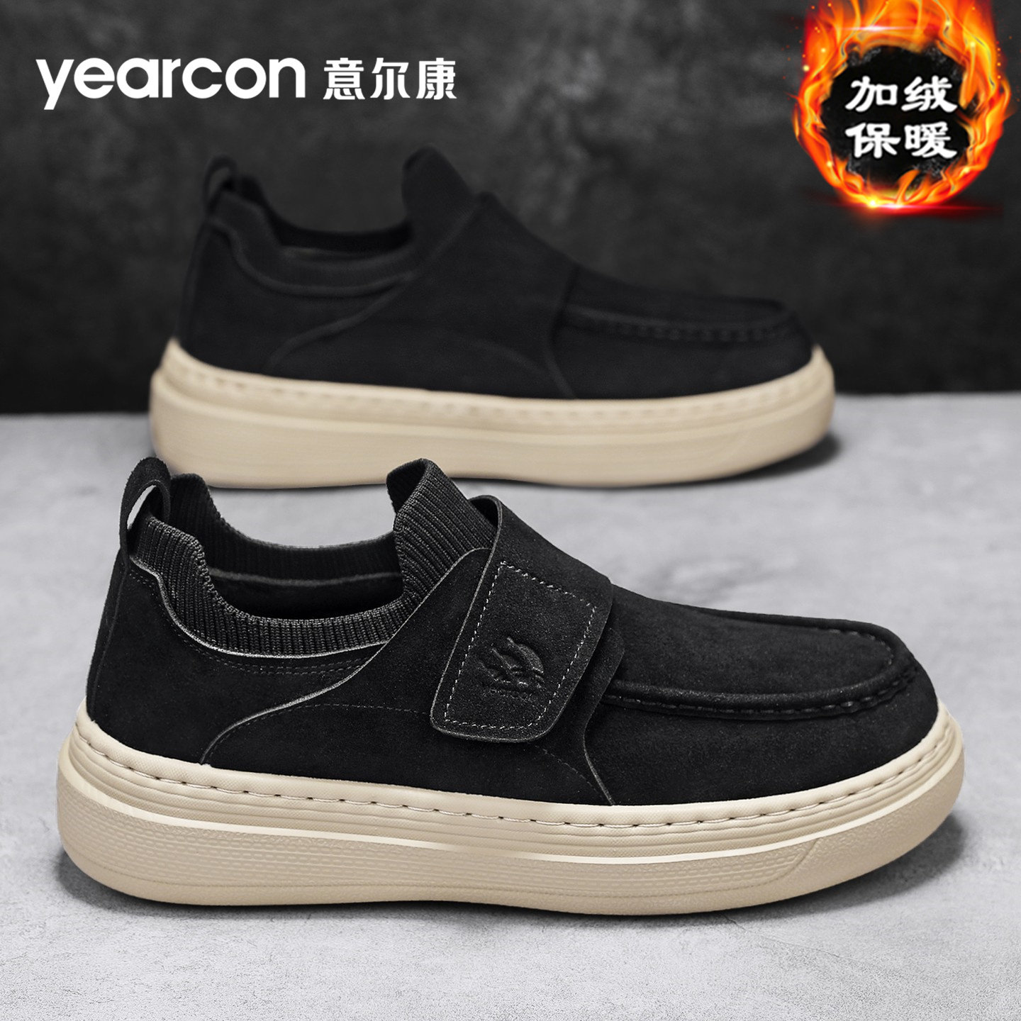 意尔康板鞋男鞋2026秋冬季加绒棉鞋百搭爆款一脚蹬懒人乐福鞋单鞋