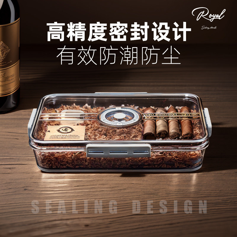 雪茄保湿盒雪茄醇化盒大容量雪茄养护盒收纳盒保湿器乐扣盒烟盒