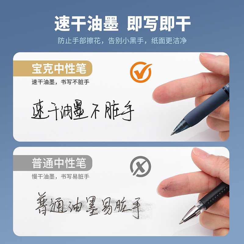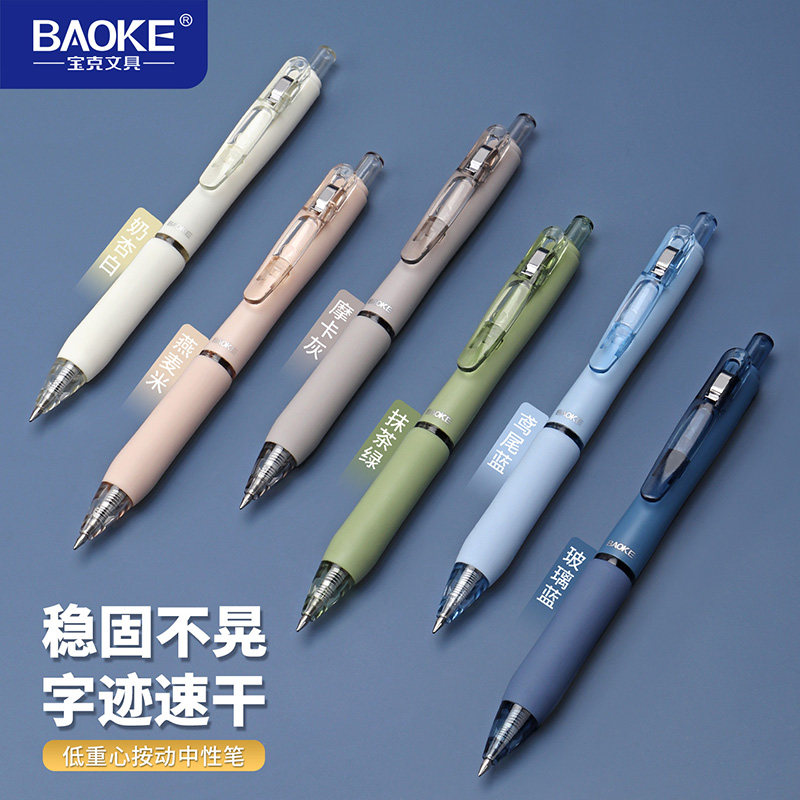 宝克刷题笔学生用高颜值按动中性笔子弹头ins日系考试顺滑0.5笔芯黑色水性签字笔0.7硬笔书法练字笔碳素黑笔