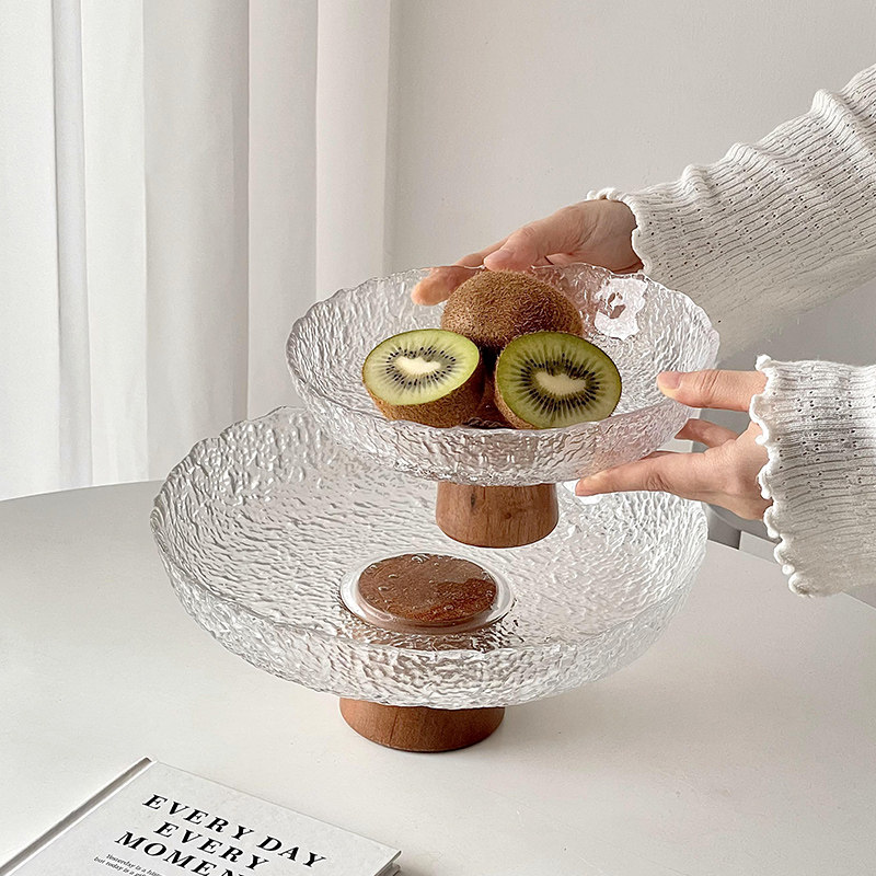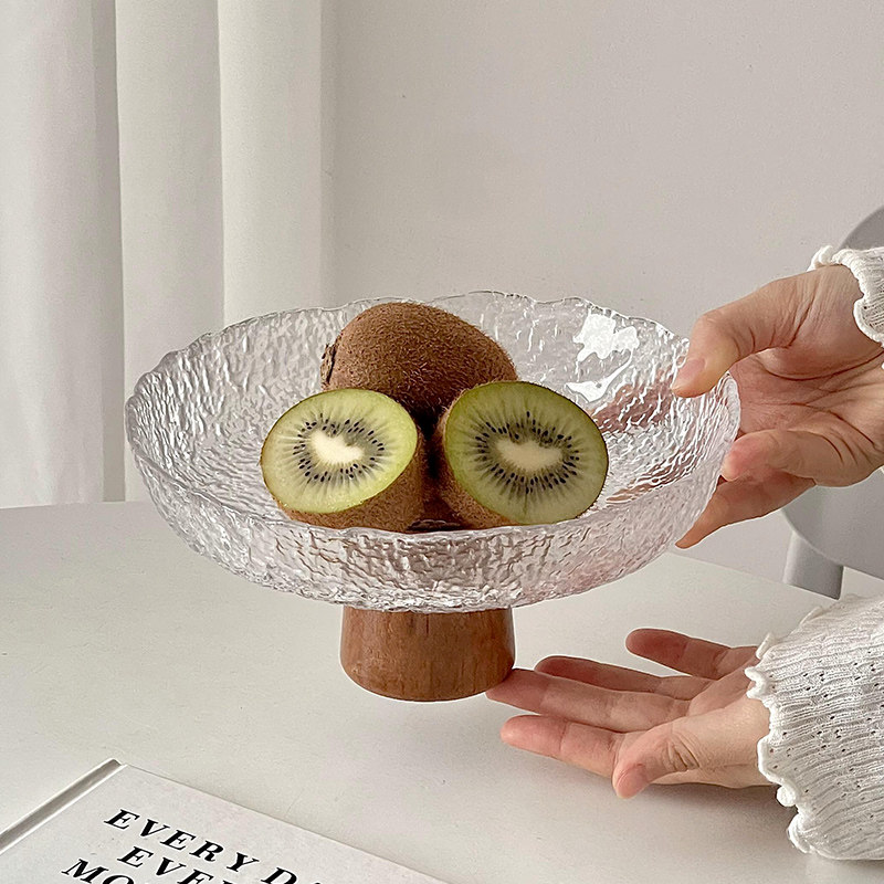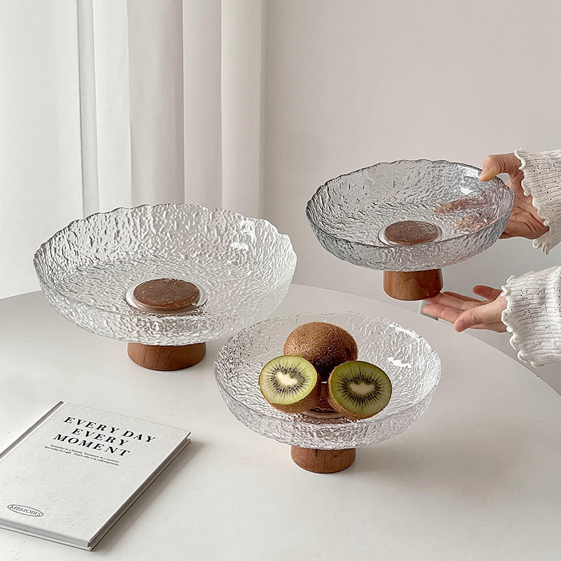 锤纹高脚玻璃果盘客厅茶几家用高端精致高颜值糖果干果零食摆放盘