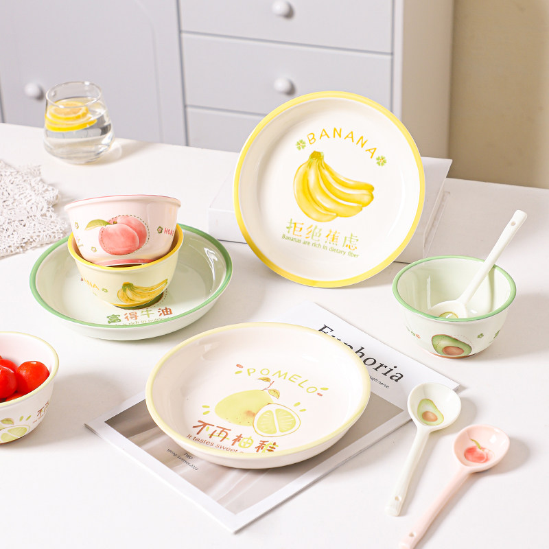 釉下彩陶瓷餐具套装组合家用米饭碗菜盘子清新高颜值个人专用碗