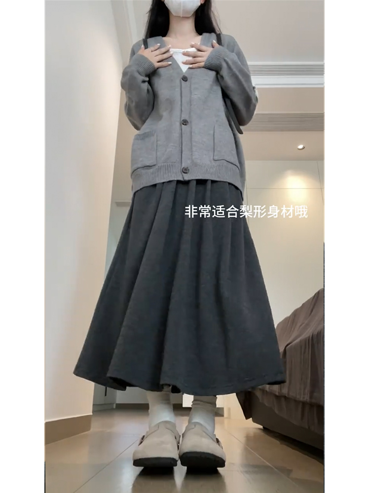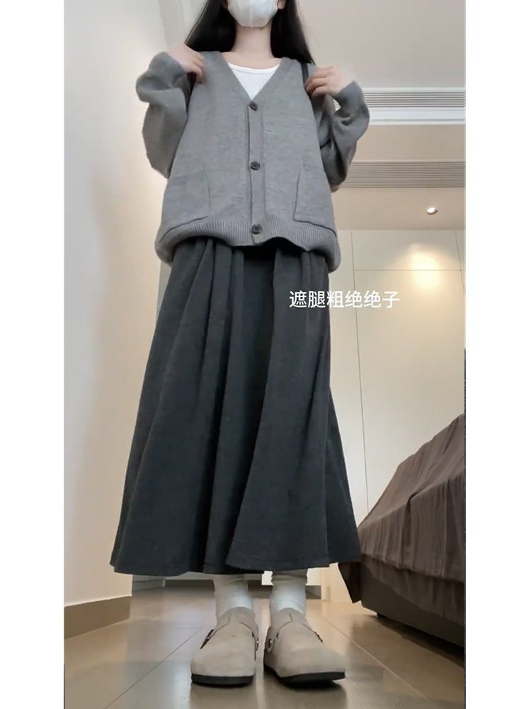 深灰色糯米裙女秋季大码梨形身材遮肉显瘦长裙高腰a字软糯半身裙
