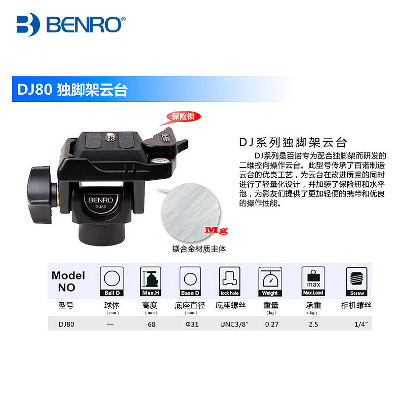 二维云台 百诺DJ80单反相机微距摄影摄像二维控向独脚架专业云台