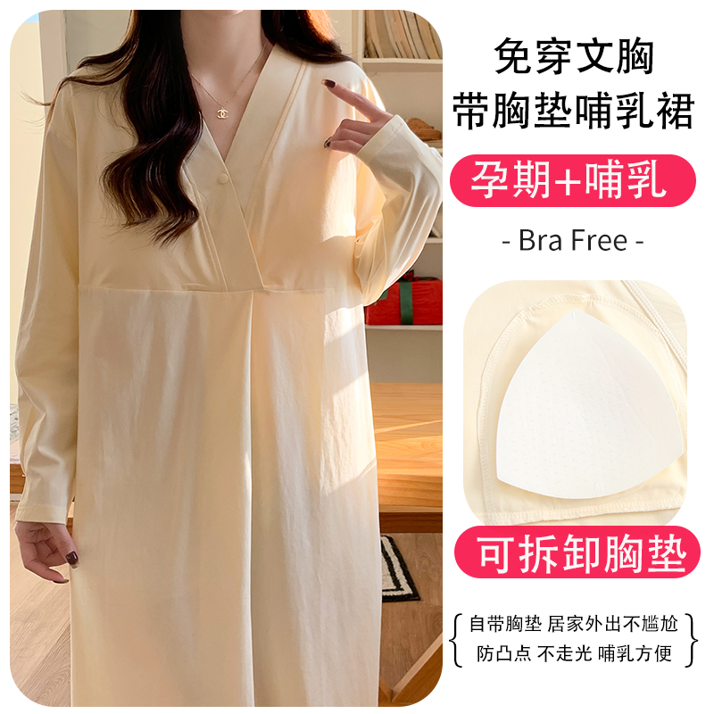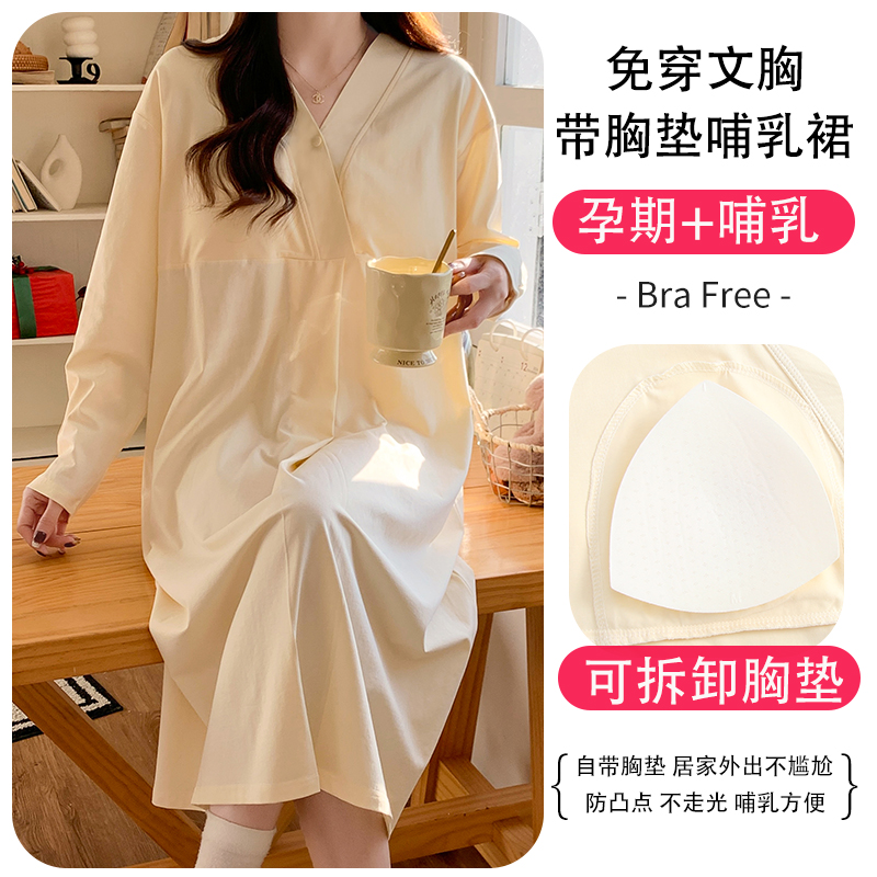 婧麒送胸垫孕妇冬季纯棉产妇待产裙哺乳睡衣产后月子服产房连衣裙