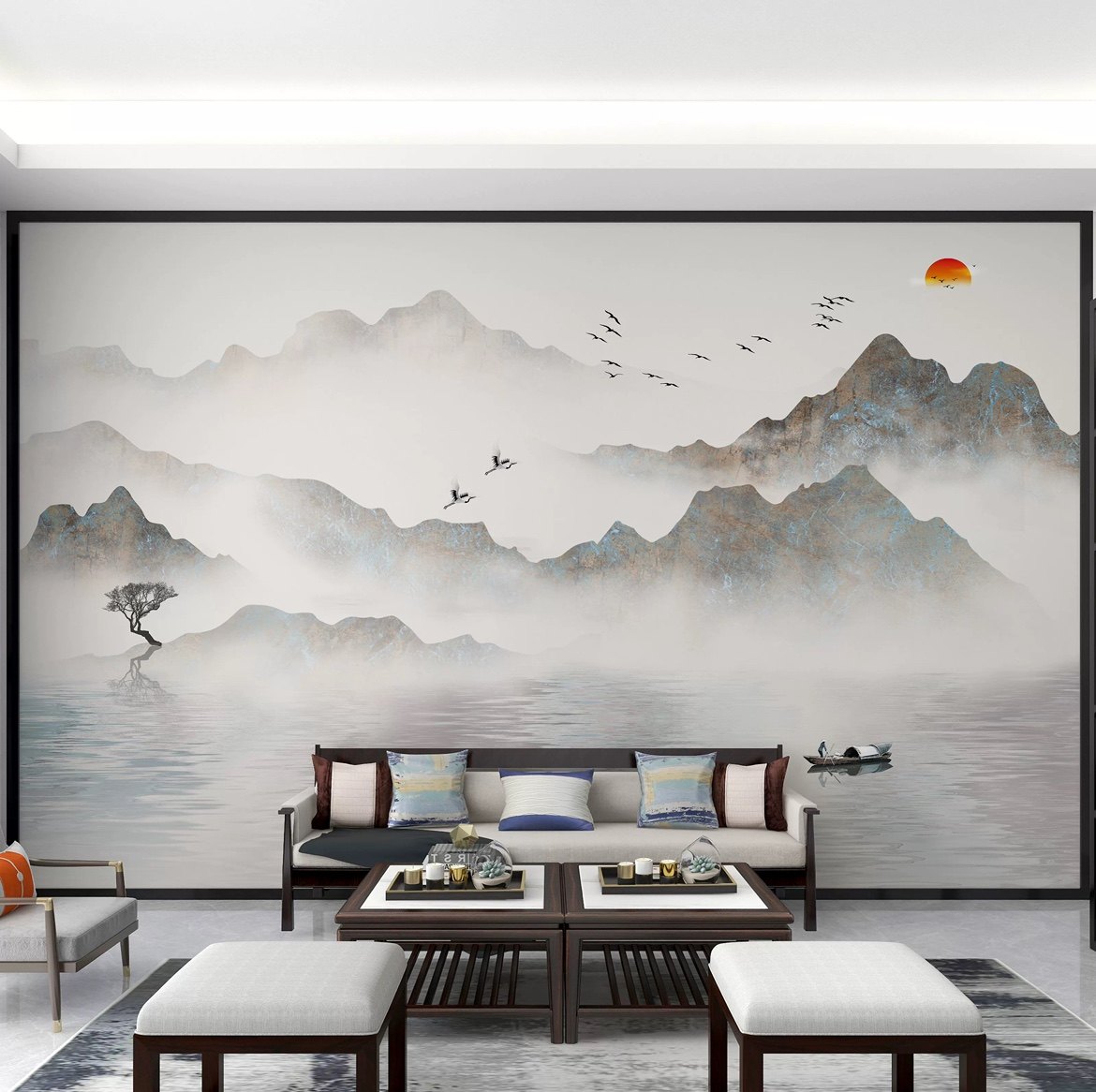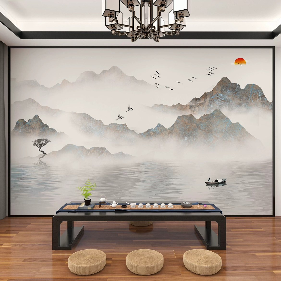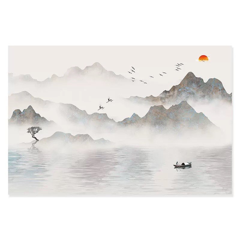 墙纸定制中式3d立体水墨山水电视背景墙壁纸客厅壁布卧室墙布壁画
