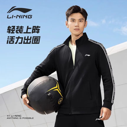 李宁外套男24春秋季新款织带开衫立领卫衣宽松夹克上衣 AWDUC35