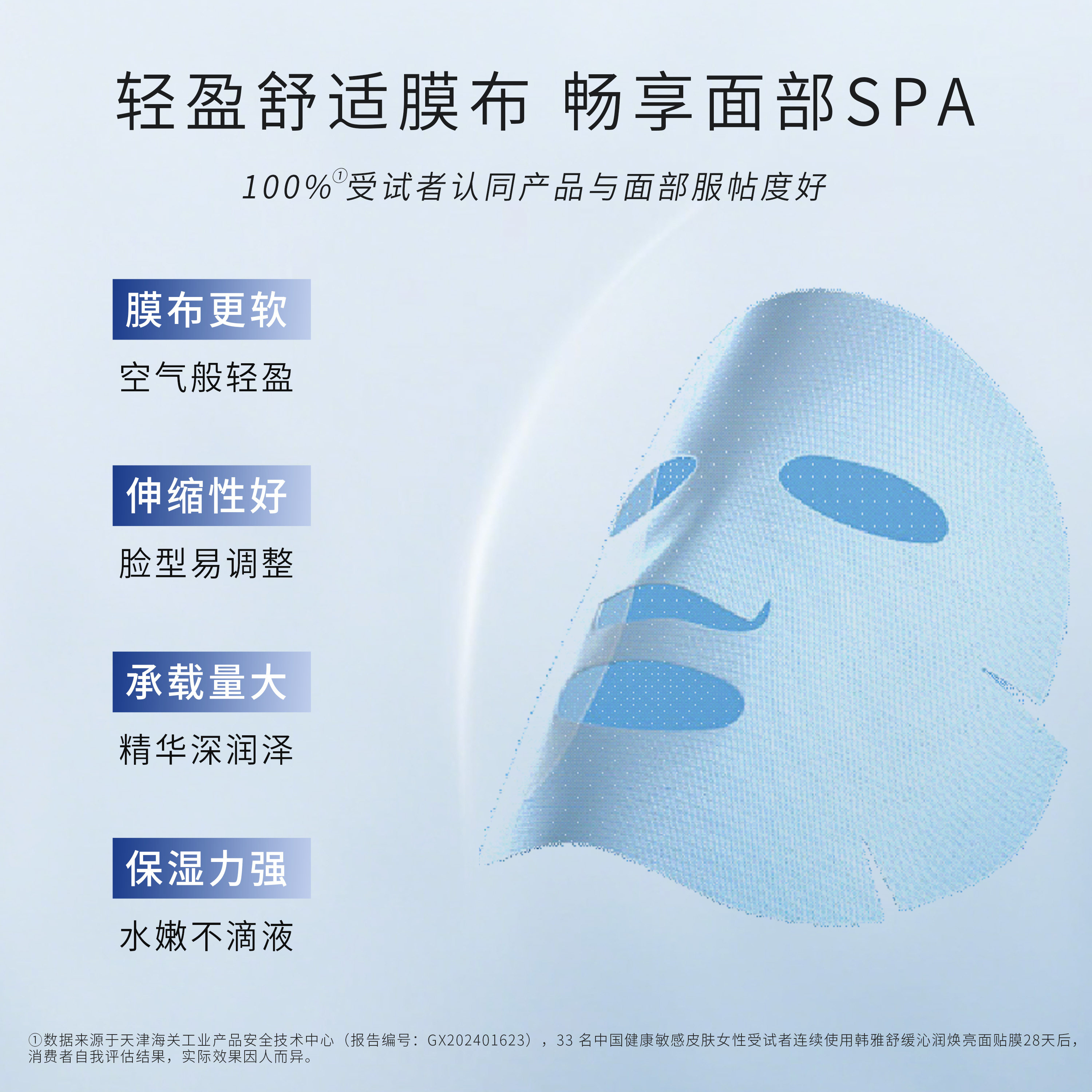 韩雅舒缓沁润焕亮面膜保湿积雪草舒缓肌肤面贴膜水润敏肌清洁补水