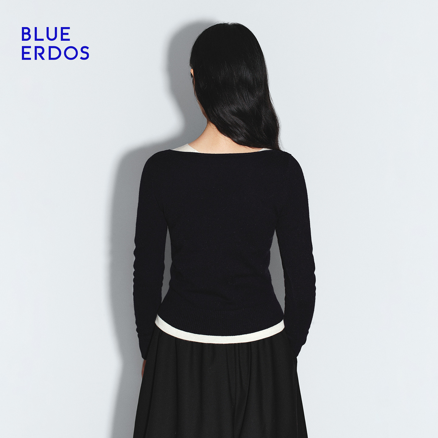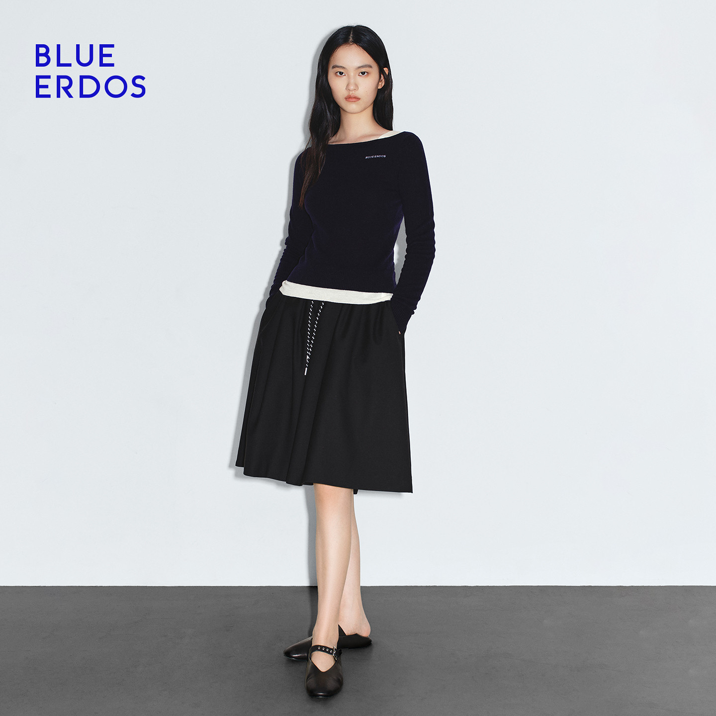BLUE ERDOS 冬季新时尚简约logo刺绣一字领女针织衫B2256A005