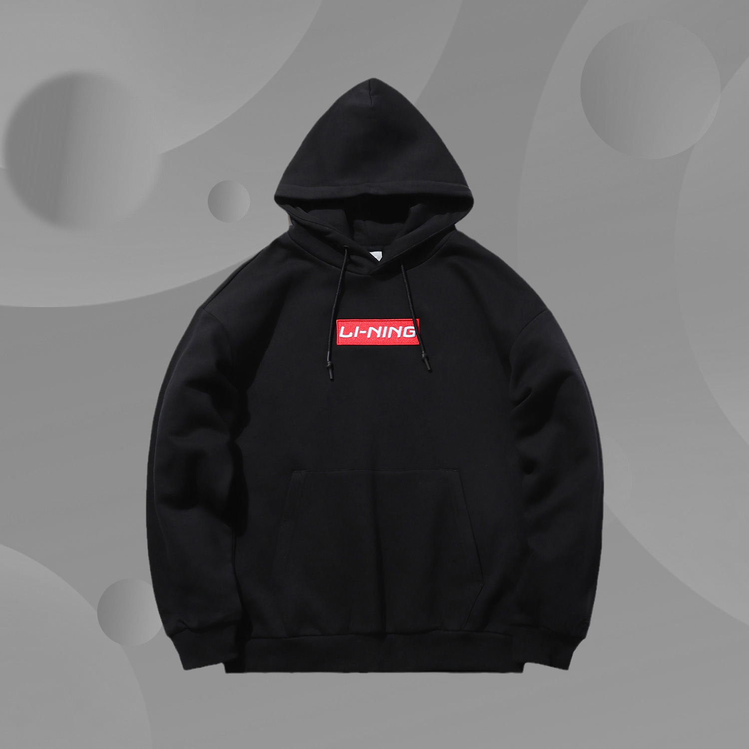 李宁正品男女同款情侣加绒生活宽松休闲连帽套头运动卫衣外套