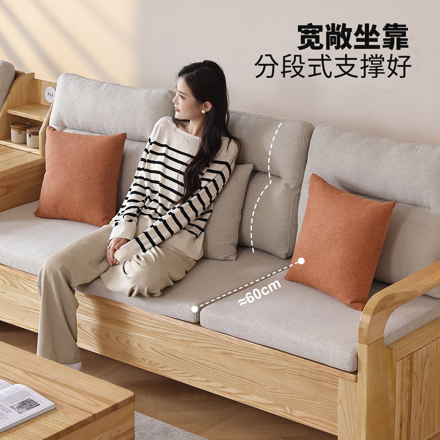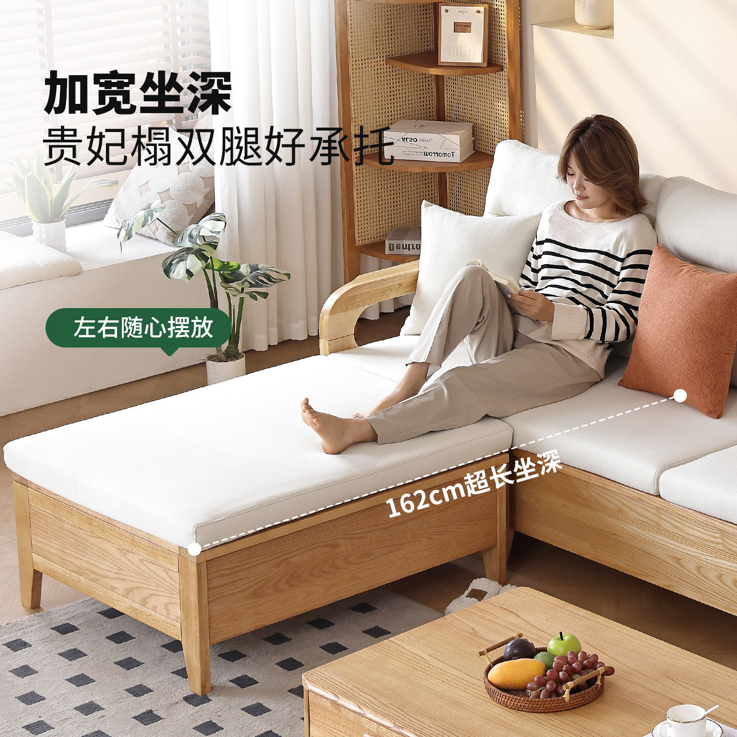 一林半舍白蜡木实木沙发北欧现代简约客厅家具小户型直排三人位